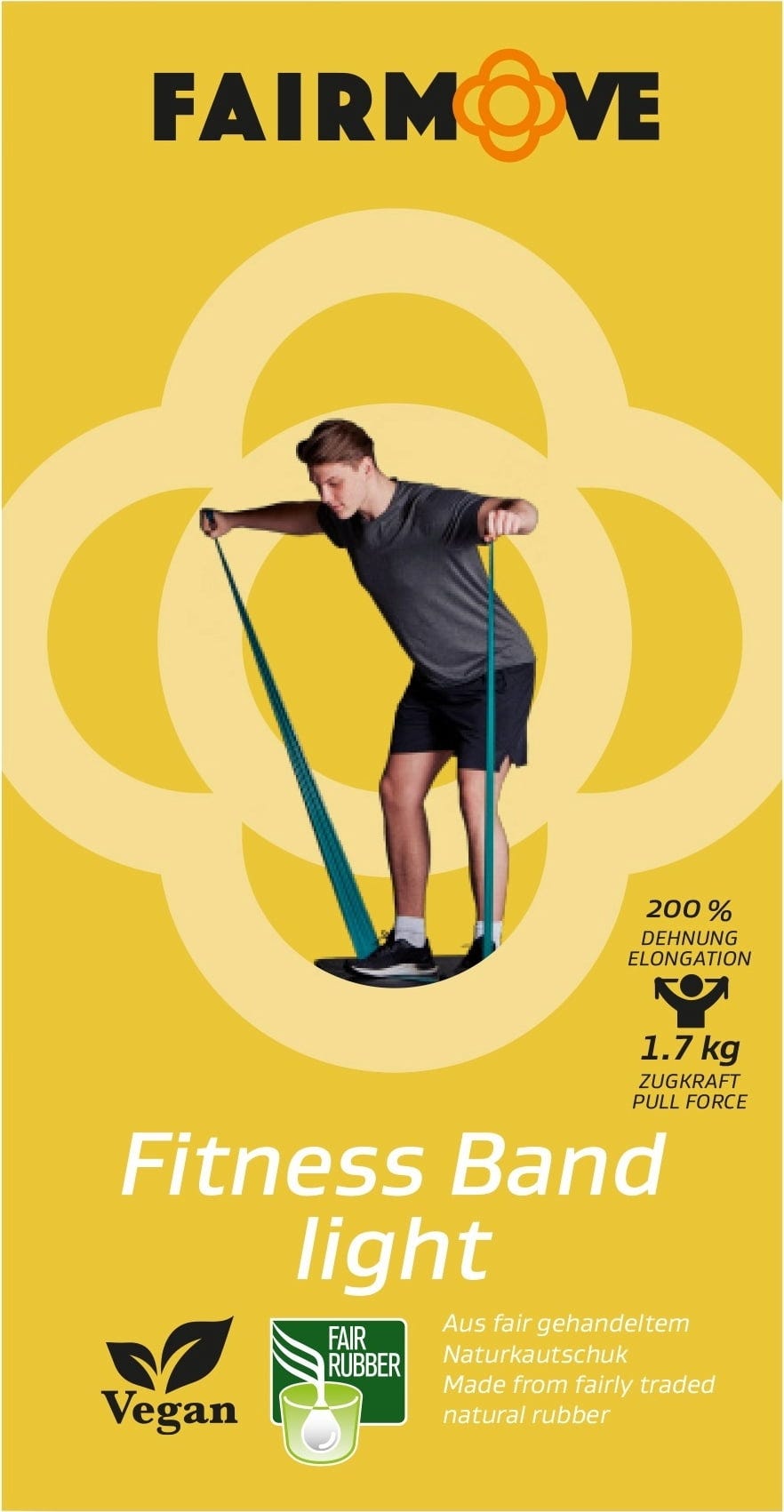 Esta banda de fitness FAIR MOVE es una herramienta versátil para estirar todo el cuerpo, desarrollar la fuerza de forma específica y mejorar el equilibrio, ideal para yoga, pilates o cualquier otro programa de fitness que te guste. Déjate convencer por la alta calidad y la resistencia al desgarro de este material robusto. No contiene plástico ni plastificantes y está fabricada al 100 % con caucho natural de comercio justo procedente de Sri Lanka. Puedes entrenar con total tranquilidad, ya que la banda es totalmente vegana y, tras un largo periodo de uso, se degrada sin dejar residuos.