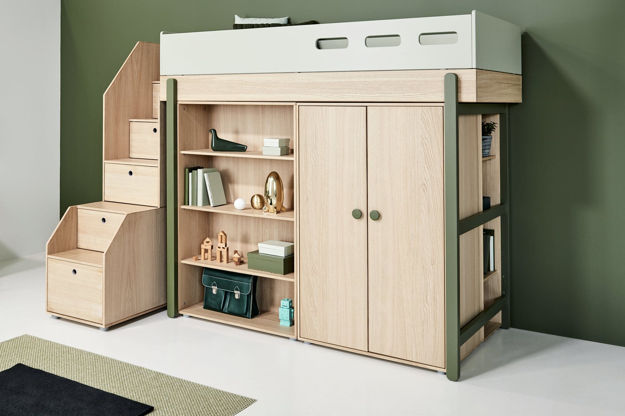 Peldaños para la cama alta Popsicle de Flexa. Los peldaños de escalera con espacio de almacenamiento son ideales para guardar cosas que deben estar fuera de la vista pero siempre al alcance de la mano. Los peldaños están hechos de chapa de MDF.