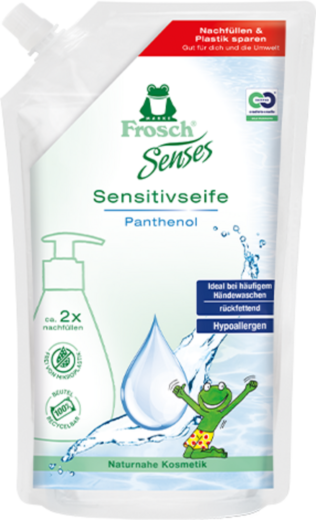 ¡Con este Recambio de Jabón Líquido Frosch no sólo podrás rellenar tu dispensador de jabón de manos, sino que también ahorrarás en residuos de envases!
