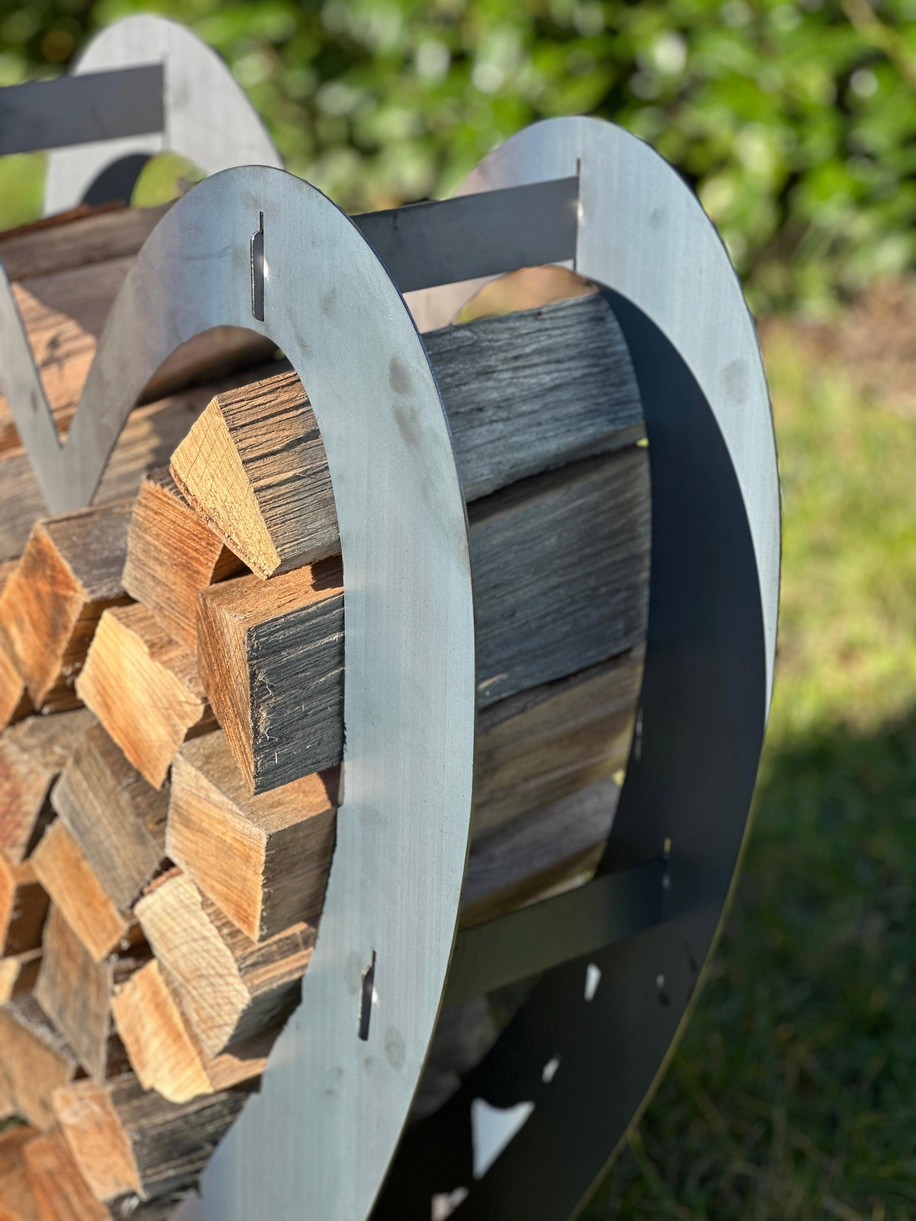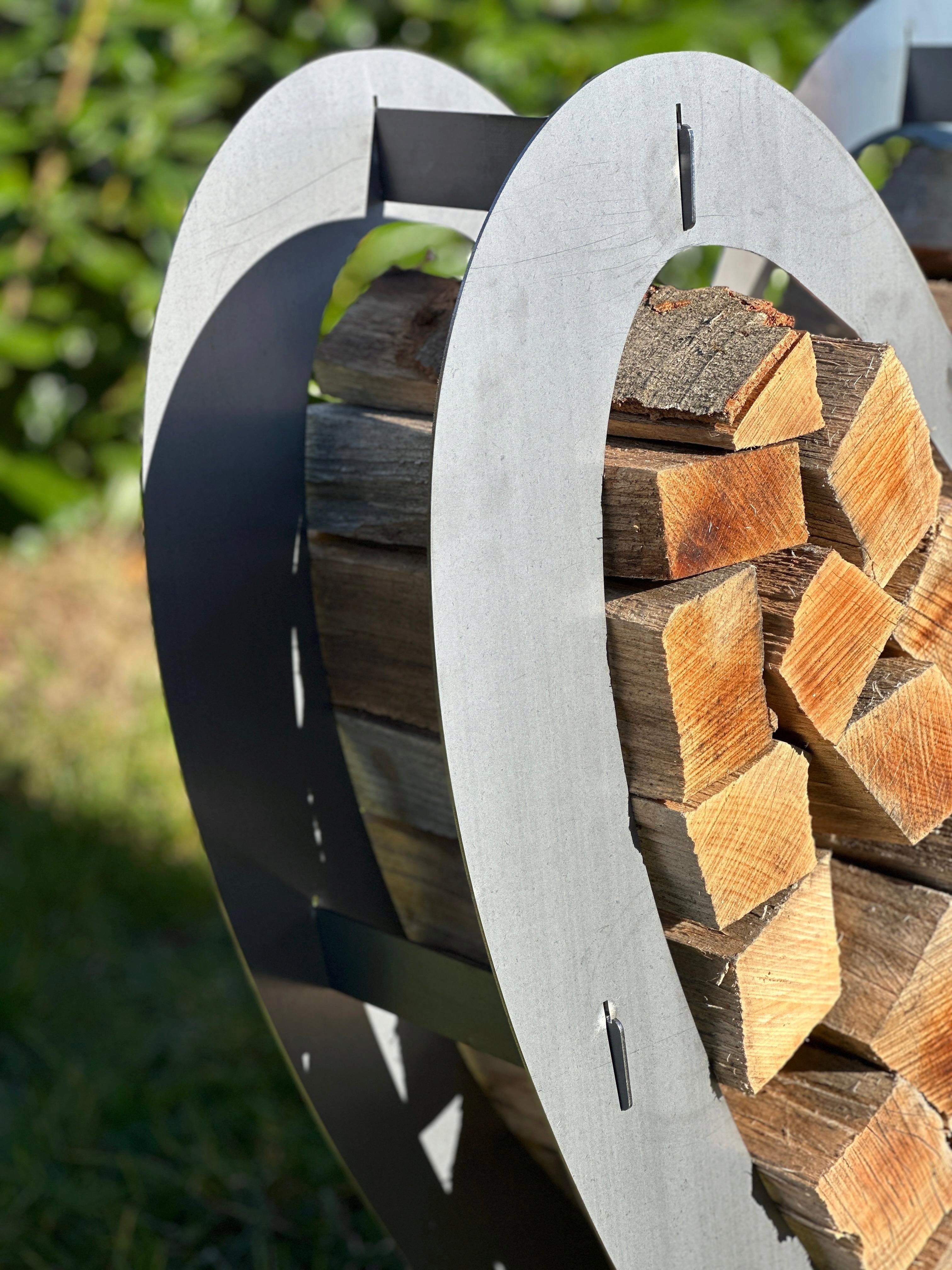 Fabricado en acero macizo, ofrece un amplio espacio para almacenar leña, de modo que siempre disponga de todo lo necesario para barbacoas, braseros o chimeneas.