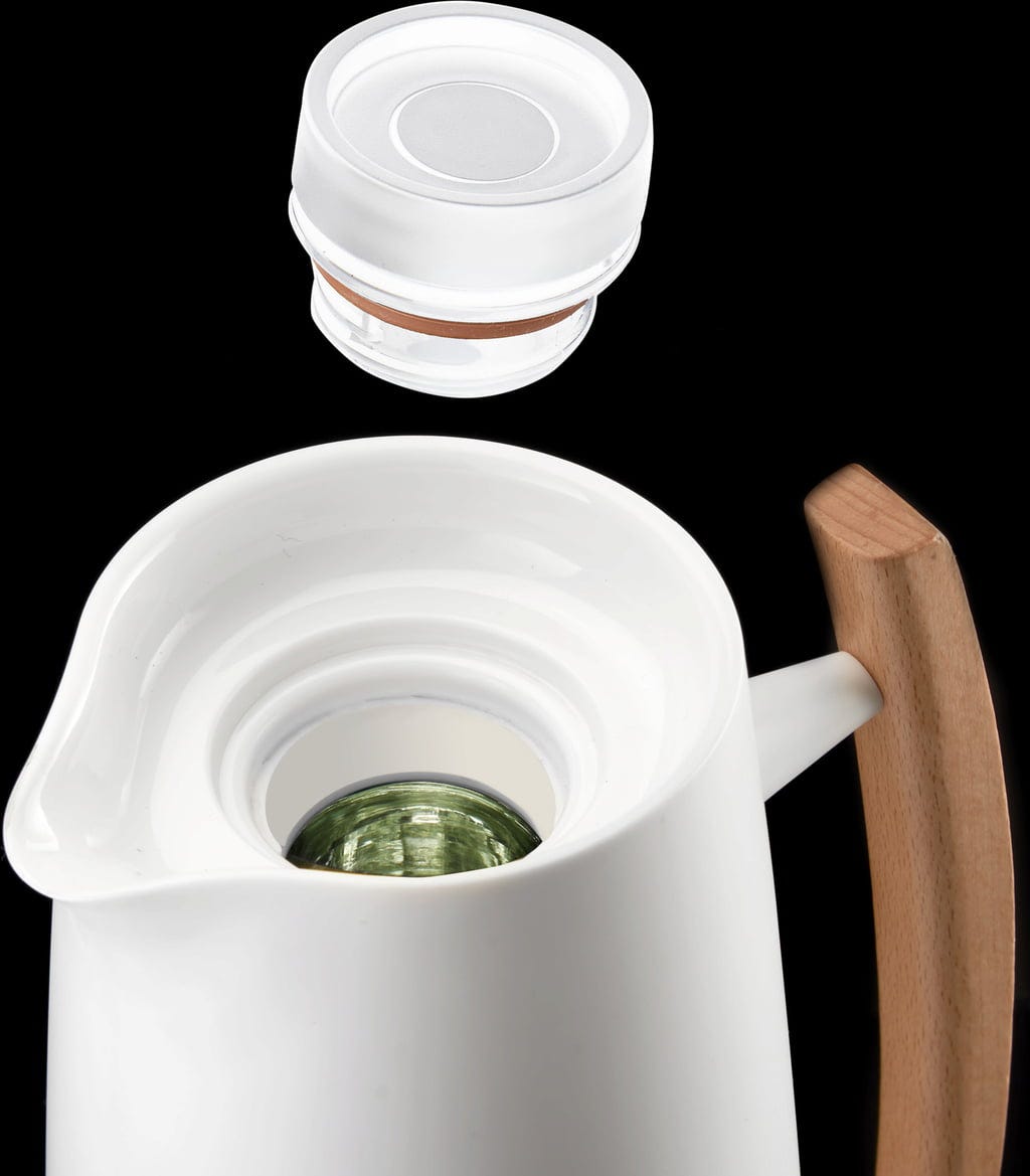 Gracias al práctico sistema push, la jarra se abre fácilmente y se cierra de forma segura. El cierre hermético evita cualquier derrame y conserva la temperatura de forma óptima. La amplia boca facilita y agiliza el llenado, mientras que el elegante asa de madera, además de ser estéticamente refinada, ofrece un agarre cómodo y agradable. Con una capacidad de 1 litro, Riviera '63 es la compañera ideal para todos los días y para todas las ocasiones.