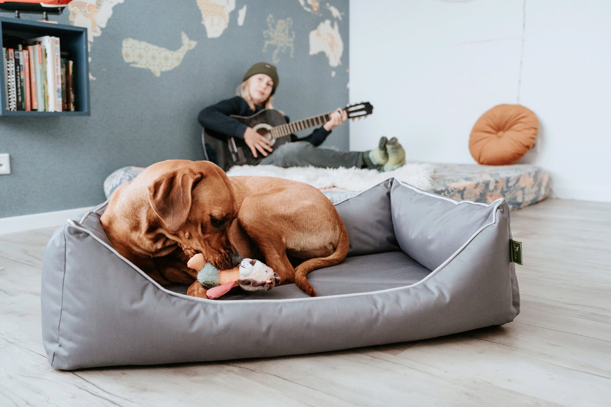 ¿Tu fiel compañero de cuatro patas sufre de enfermedades del aparato locomotor o molestias articulares? El sofá ortopédico para perros Cleveland ha sido desarrollado especialmente para perros con dolencias específicas: gracias a su colchón de espuma viscoelástica que alivia la presión, ofrece un lugar de descanso ideal para recuperarse. La columna vertebral y las articulaciones reciben un soporte óptimo, lo que puede ayudar a reducir el dolor.