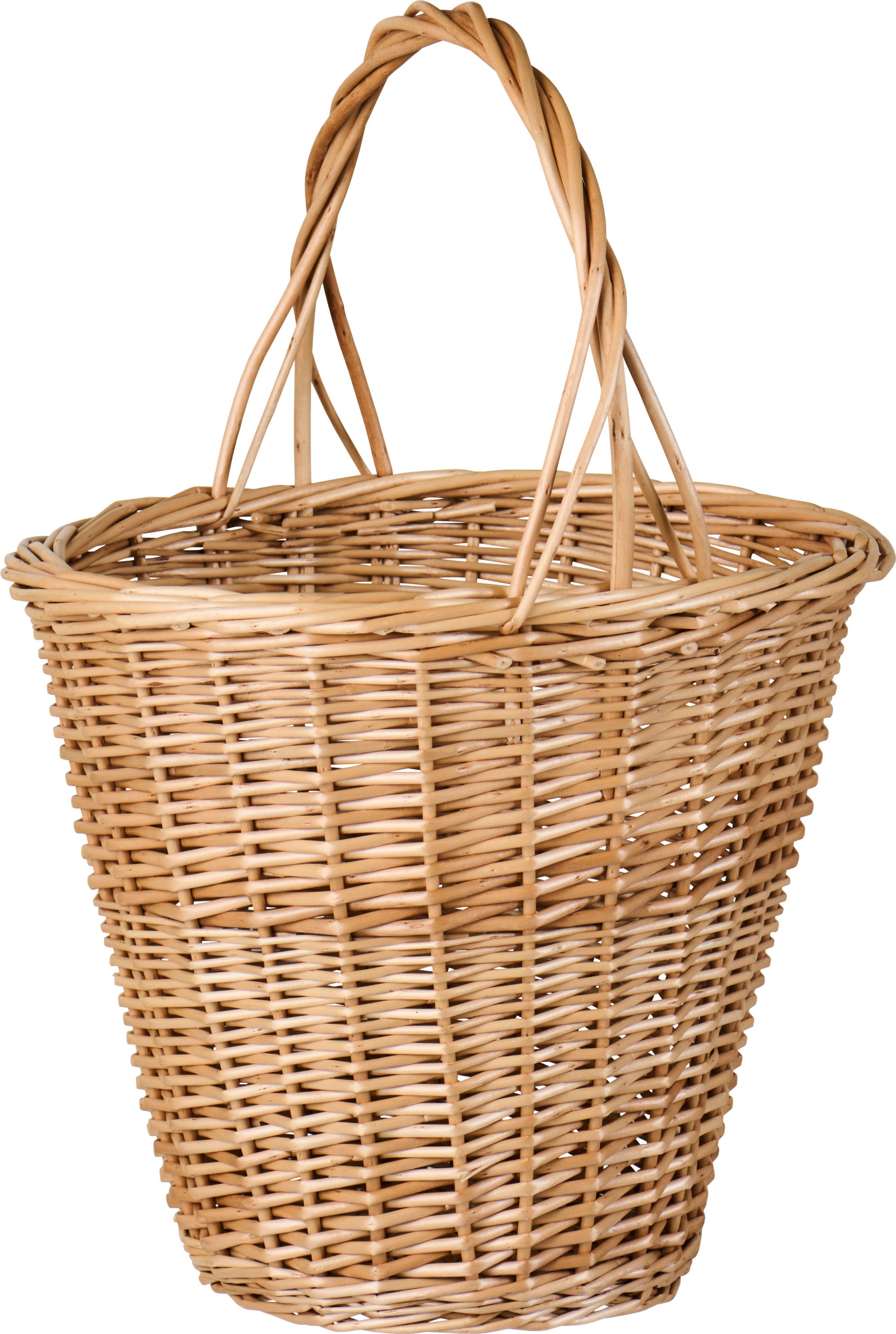 Cesta de mimbre natural tejida a mano, perfecta para la compra, la ropa o composiciones decorativas. Su diseño clásico y su estructura robusta la convierten en un accesorio práctico y duradero.
