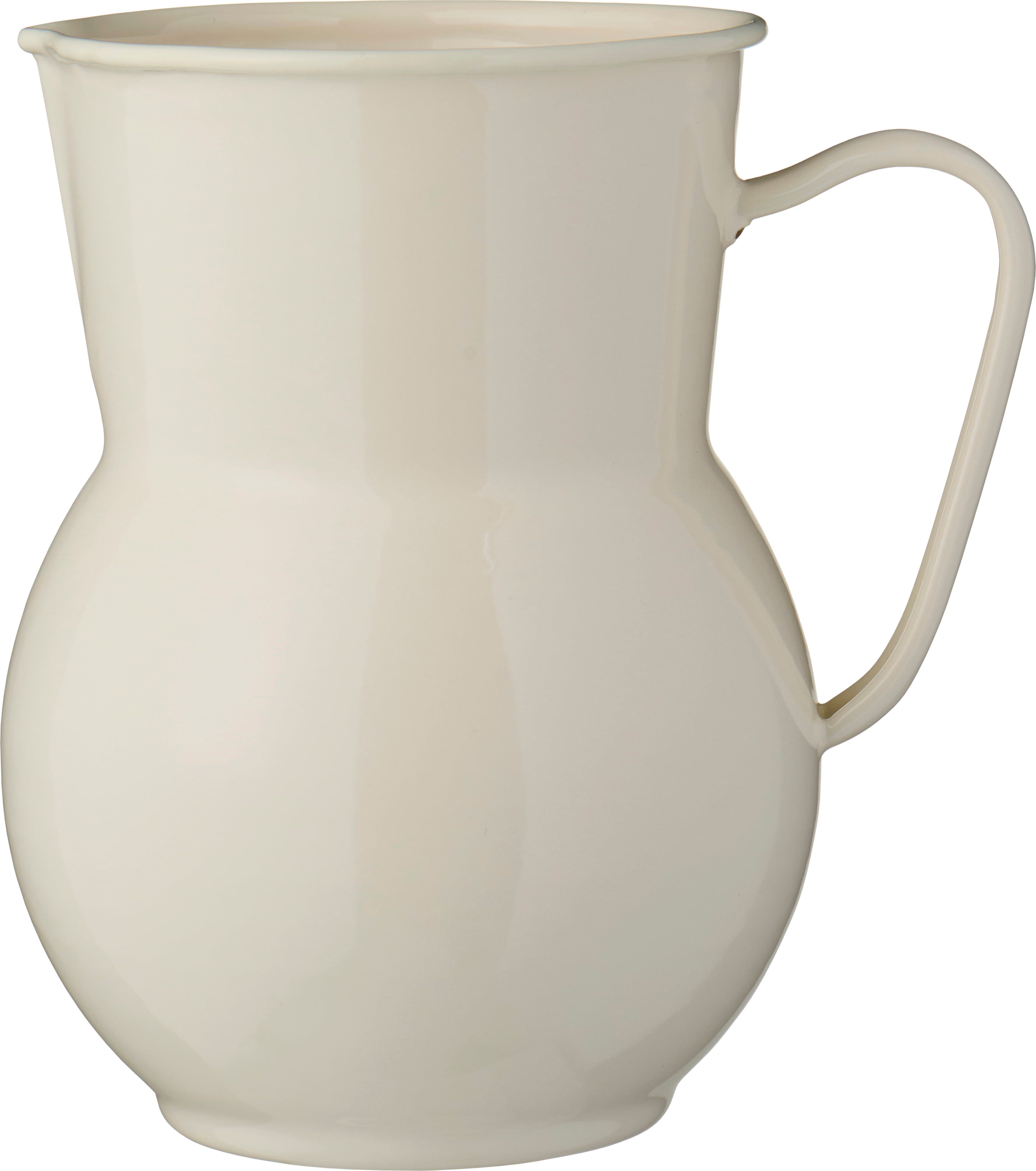 Jarra esmaltada de alta calidad con un sobrio diseño vintage, perfecta para servir bebidas frescas o para realzar ramos de flores recién cortadas. Un accesorio versátil que combina estética y funcionalidad, ideal para un hogar cuidado hasta el último detalle.