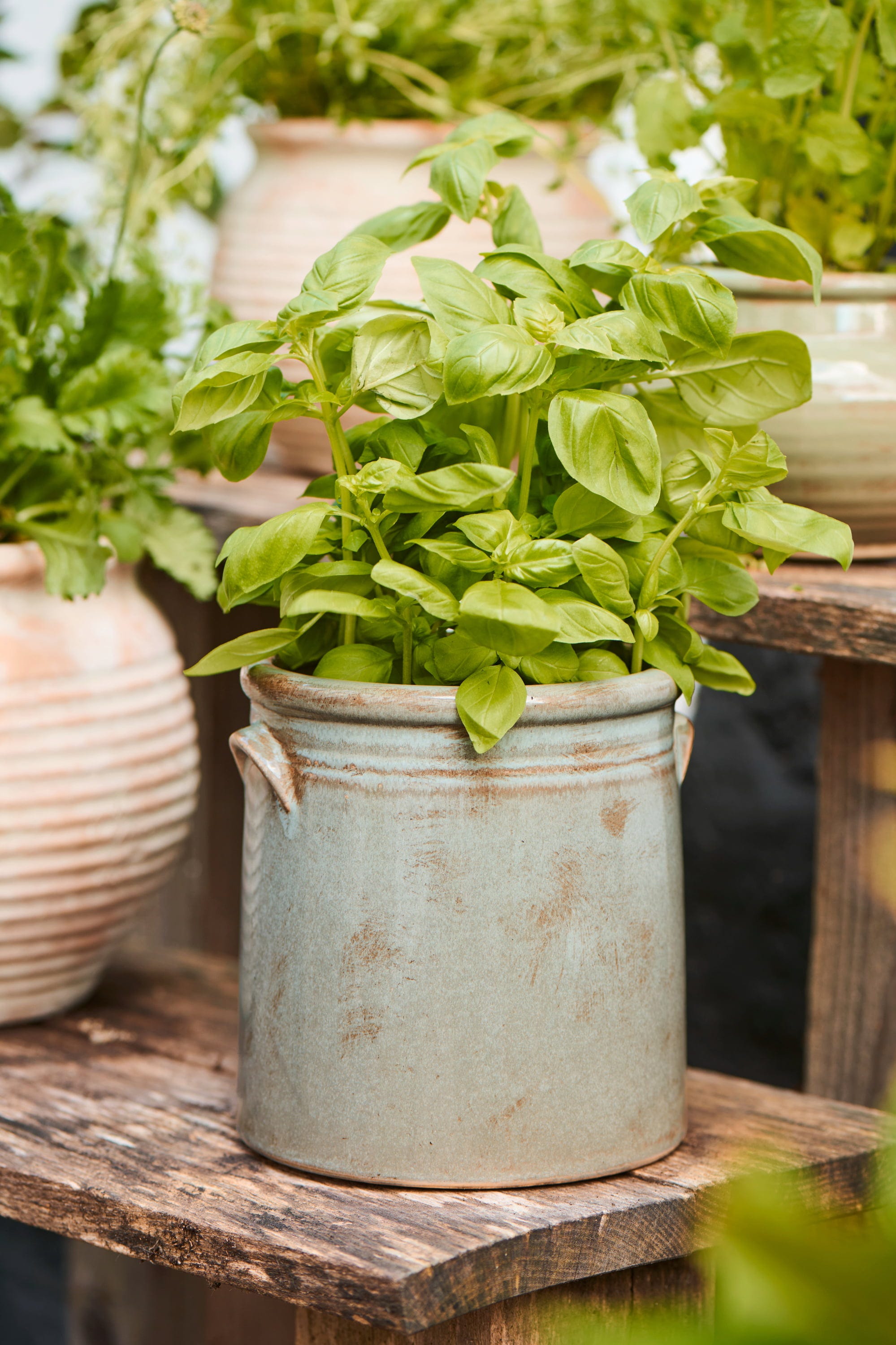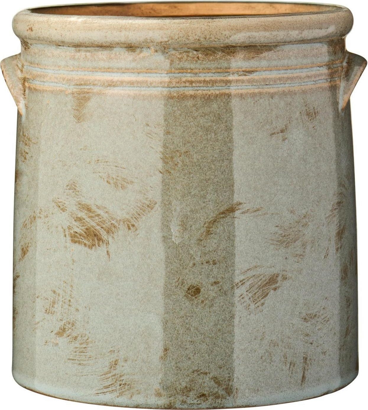 Jarrón de cerámica de alta calidad con diseño vintage y esmalte texturizado, perfecto como recipiente para utensilios de cocina o como macetero decorativo.