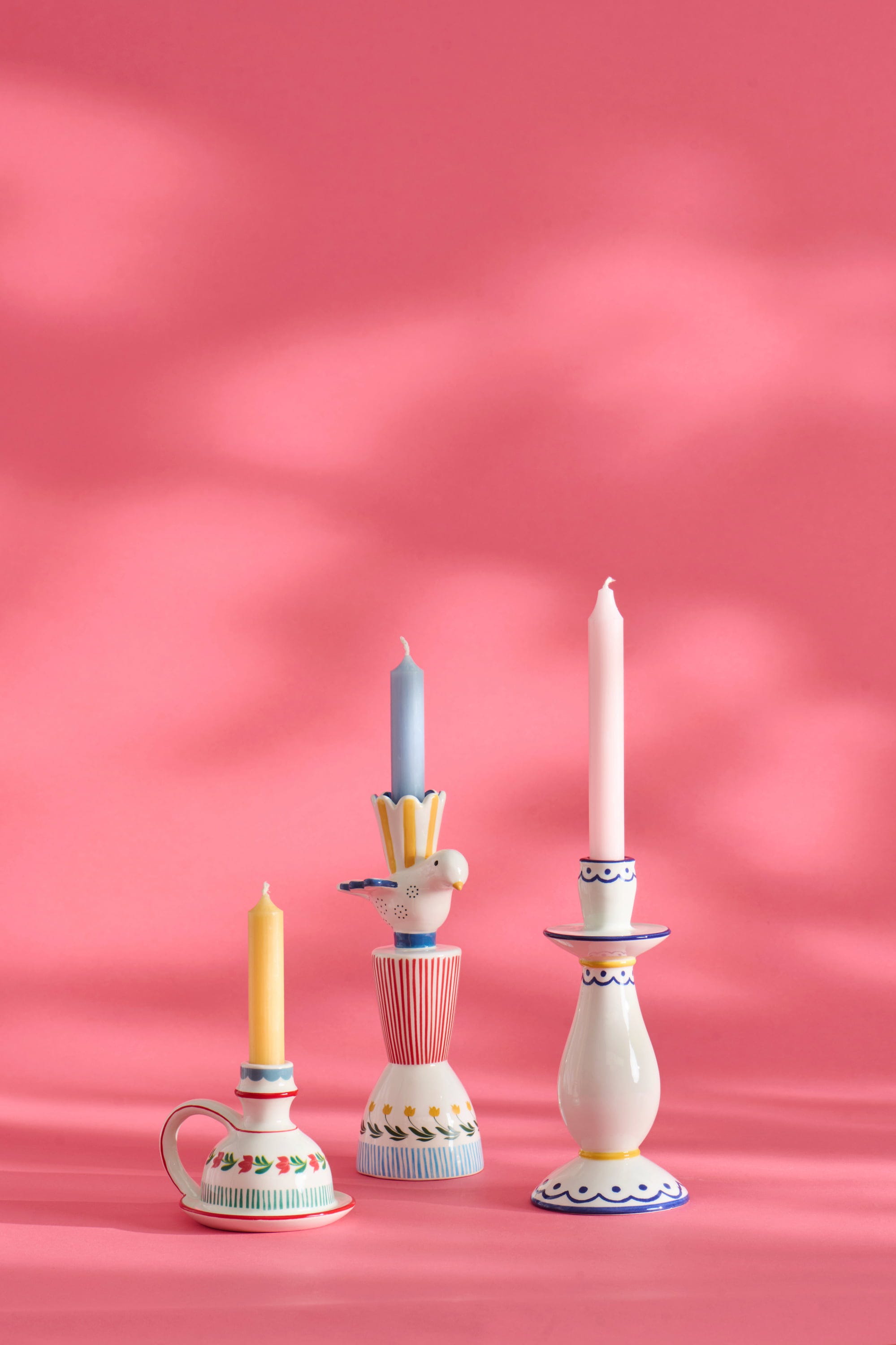IB Laursen Portavelas Blanco/Azul con Motivo Amarillo