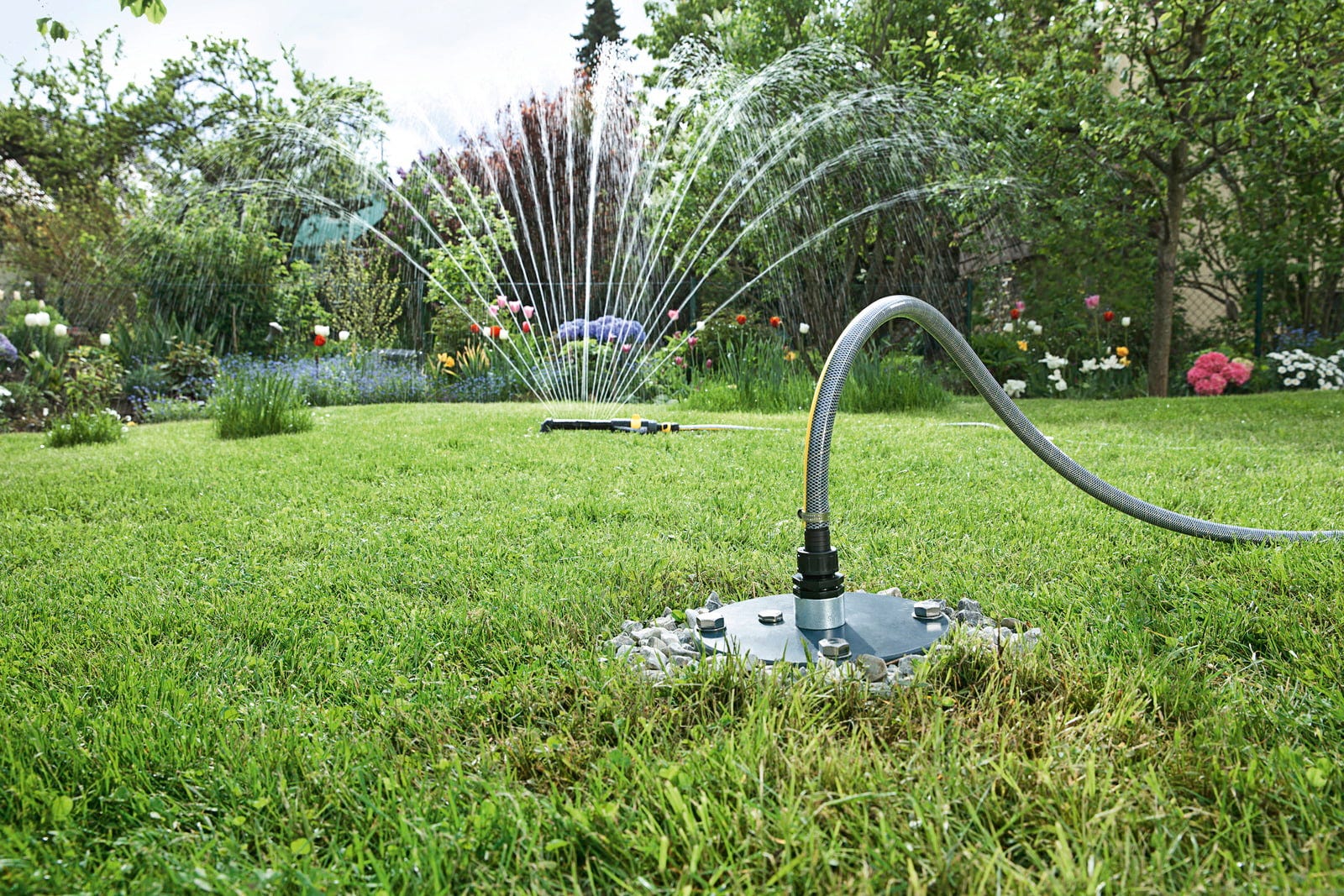 Para utilizar agua de lluvia de la cisterna para el riego del jardín, aspersores de césped y agua de servicio en el hogar