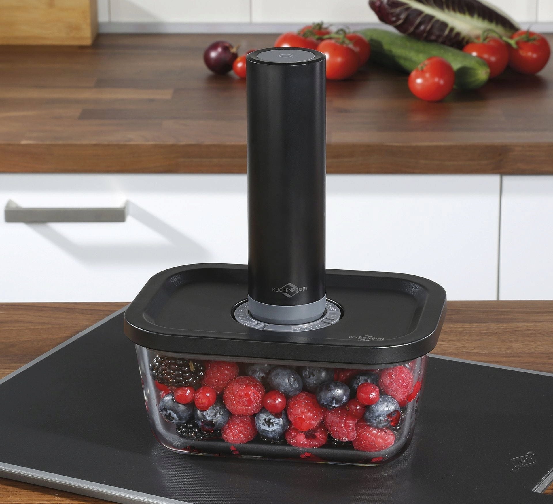 Frescura con un solo gesto. Con la bomba de vacío eléctrica de Küchenprofi, todo es fácil y rápido.