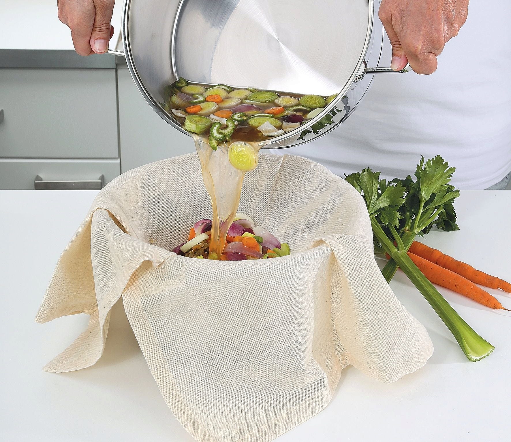 Esta versátil tela para filtrar, fabricada en algodón natural sin tratar, es un accesorio indispensable en la cocina.