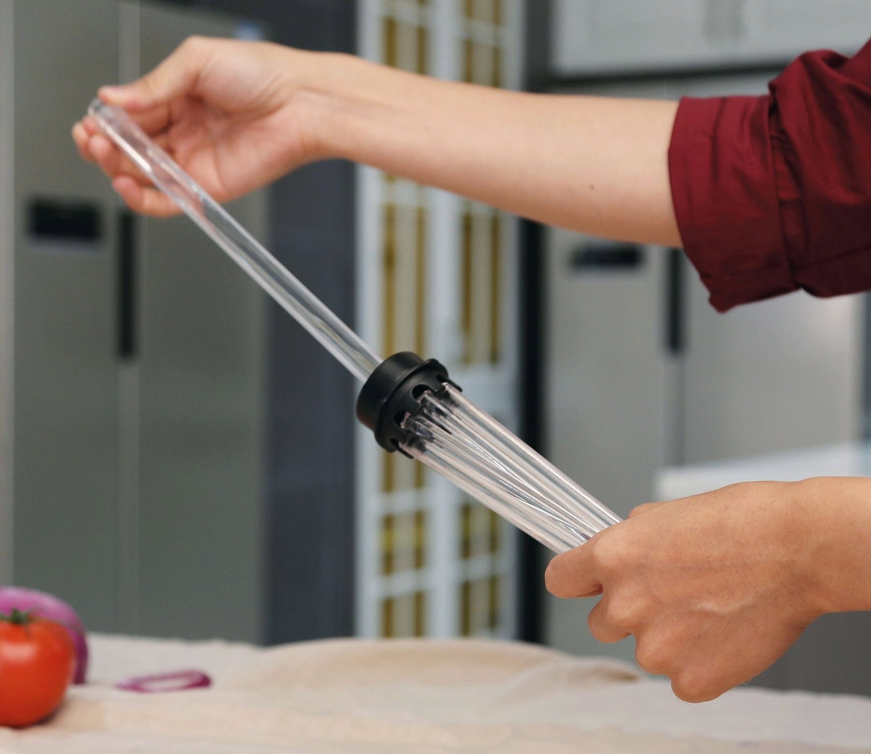 Con el tendedero PLUS de la línea PASTACASA, la pasta casera se seca de forma sencilla y ordenada. Los 8 brazos de acero inoxidable ofrecen espacio suficiente para que la pasta no se toque ni se pegue.