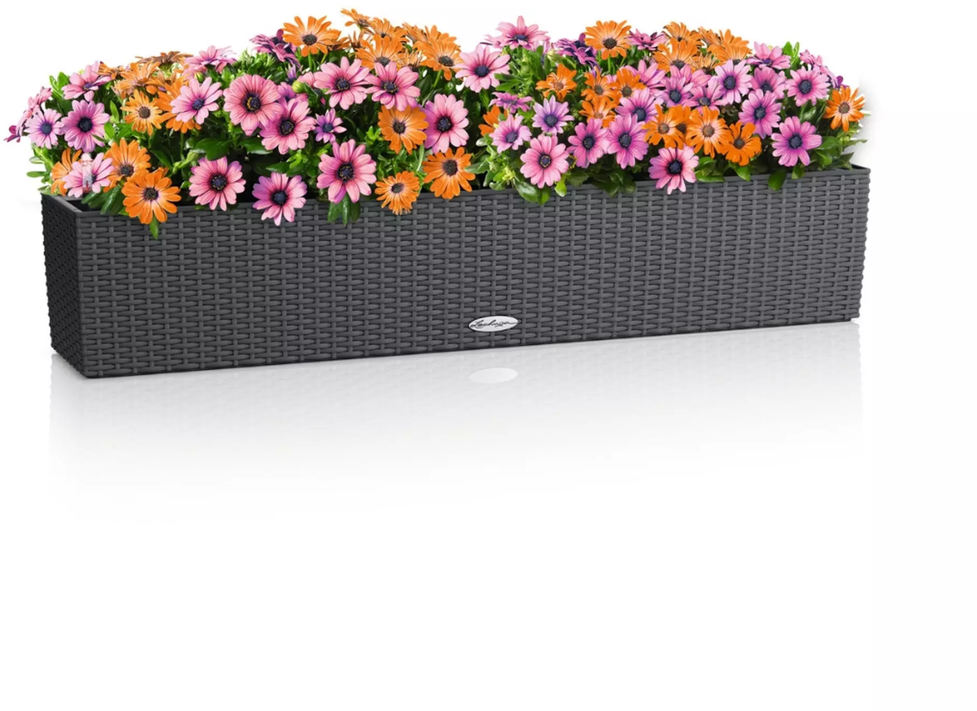 Esta maceta Lechuza de polipropileno resistente a los rayos UV impresiona por su practicidad y elegancia. También se puede fijar a la barandilla del balcón con los accesorios disponibles por separado.