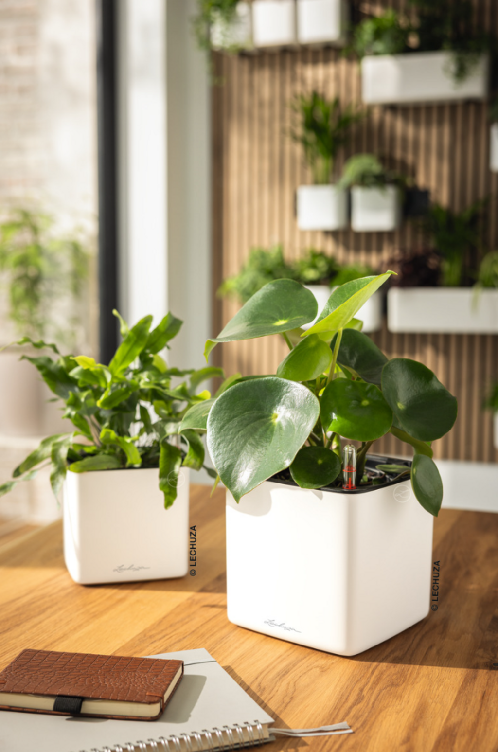 Esta pequeña maceta de mesa aporta elegancia moderna a cualquier estancia. Con su superficie de alta calidad y su forma cúbica definida, realza tus plantas con estilo y aporta un toque noble y atemporal a tus espacios. Es ideal para quienes no quieren renunciar al diseño, incluso en espacios reducidos.