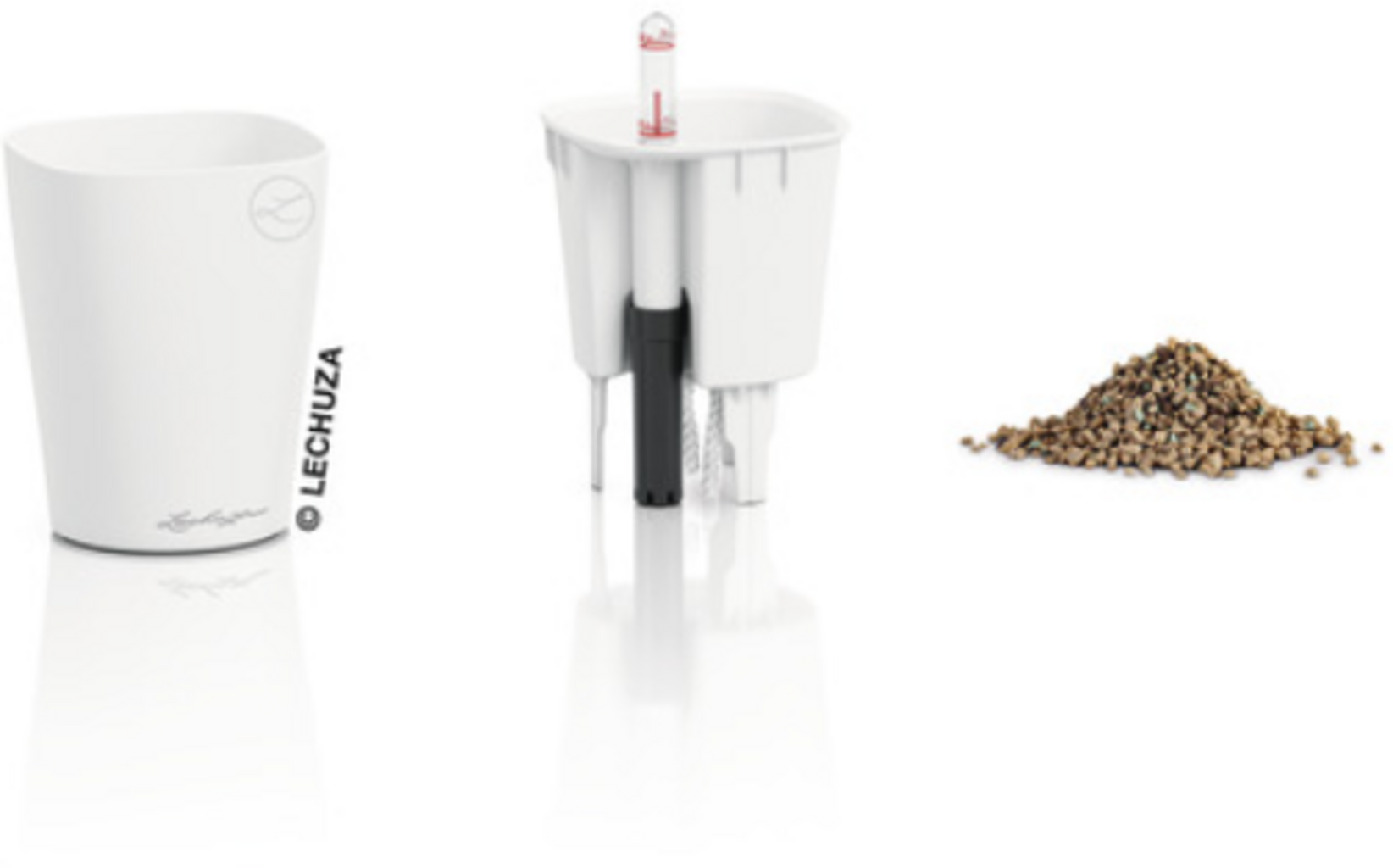 Esta pequeña maceta de mesa aporta toques verdes de forma sencilla a cualquier estancia. Ya sea en el escritorio, en el alféizar de la ventana o como elemento decorativo en la mesa del comedor, garantiza una alegría duradera y es la alternativa perfecta a un ramo de flores. La práctica cubeta de plantado facilita la plantación y el trasplante, permitiendo que las raíces crezcan directamente hacia el depósito de agua. De este modo, el cuidado resulta sencillo y cómodo; incluso es posible realizar una poda de raíces sin problemas.