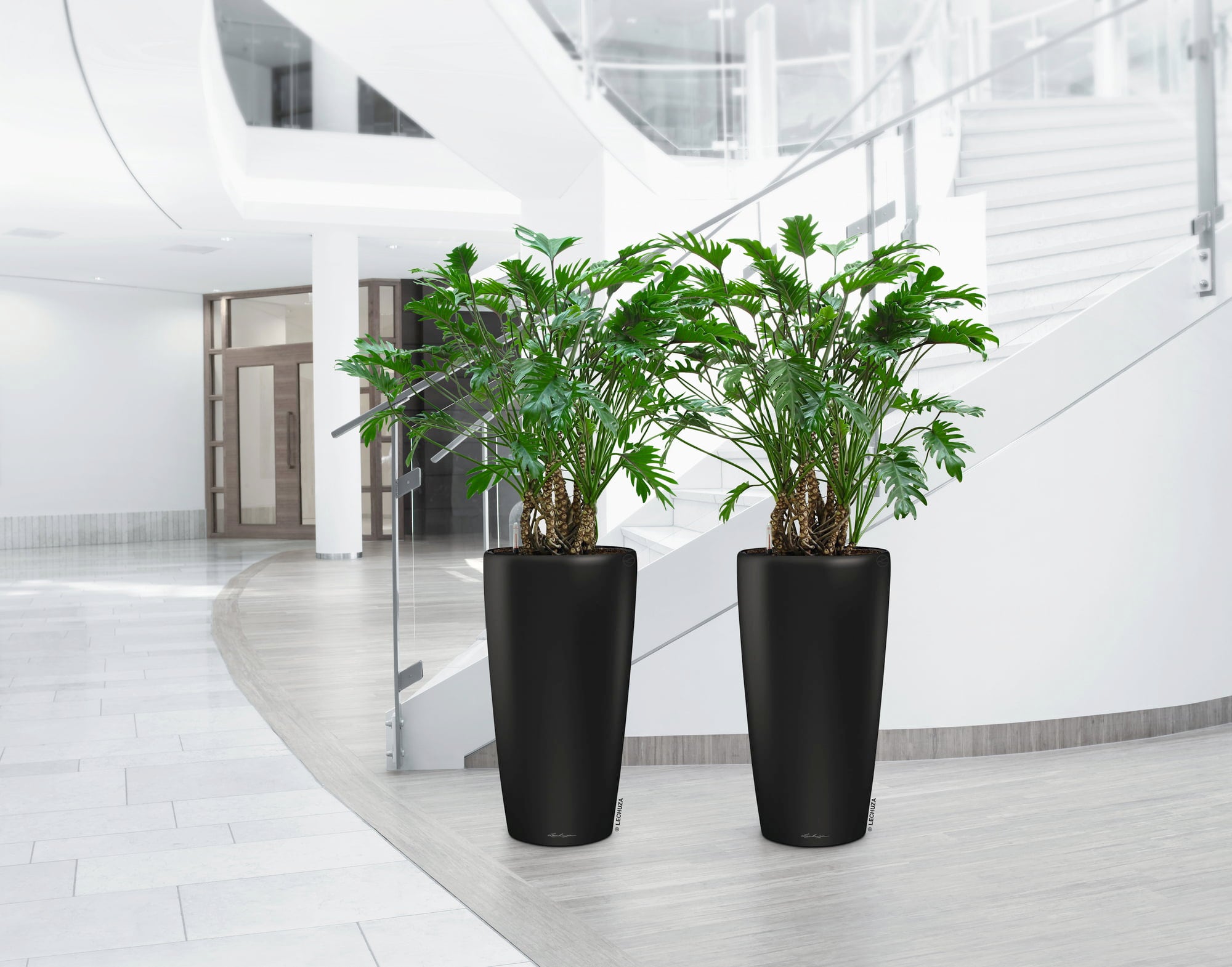 La forma del macetero RONDO es sencilla y elegante al mismo tiempo. Su diseño hace que cualquier planta resalte.