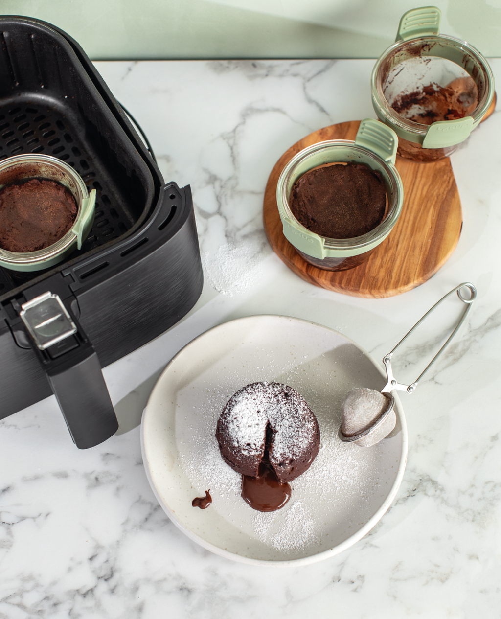 Estos pequeños moldes fabricados en resistente vidrio borosilicato no solo son perfectos para preparar pequeñas raciones en la air fryer, sino que también se pueden utilizar en el horno o en el microondas.