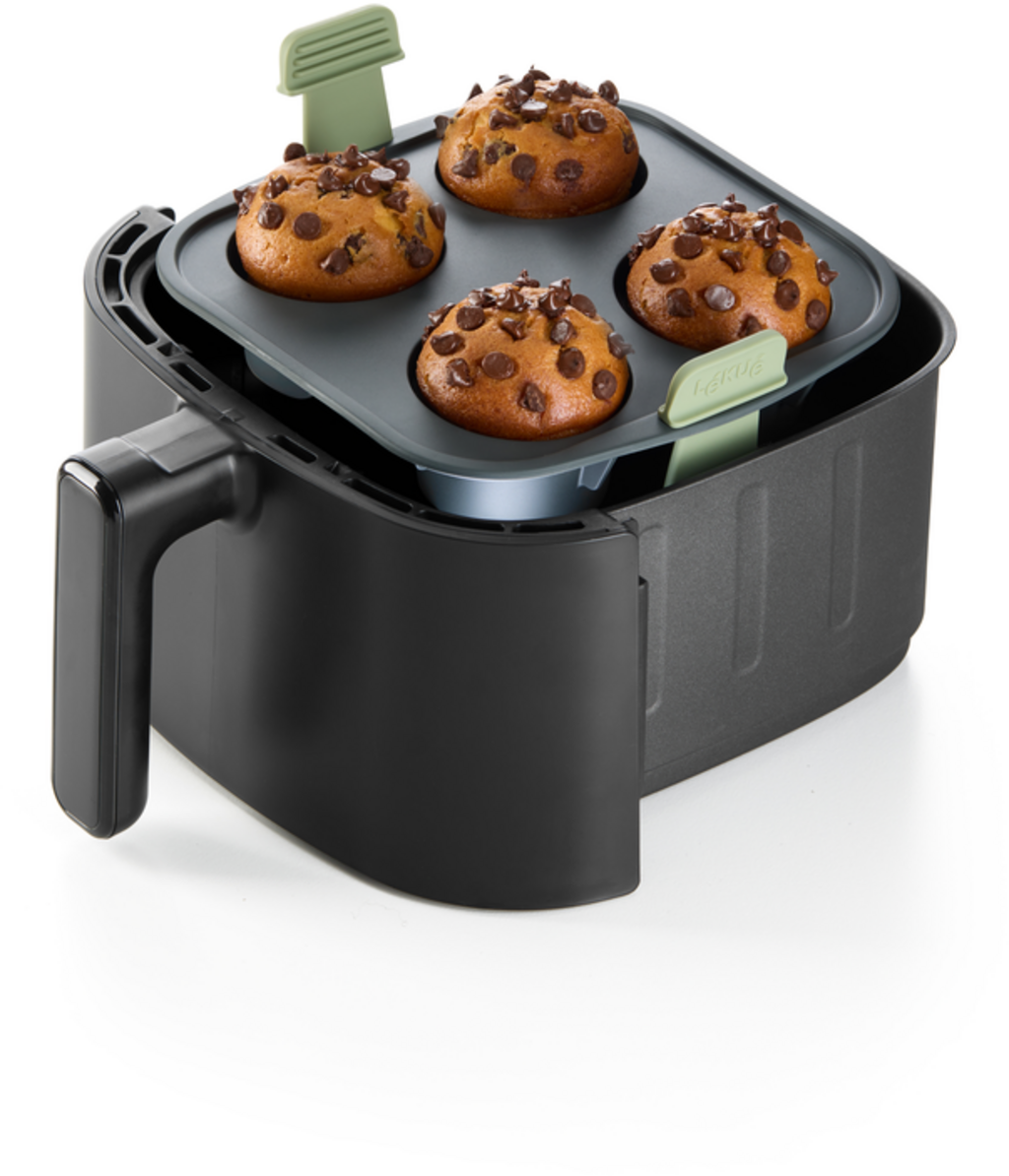 Prepara fácilmente deliciosos muffins directamente en tu air fryer con este práctico molde para muffins.