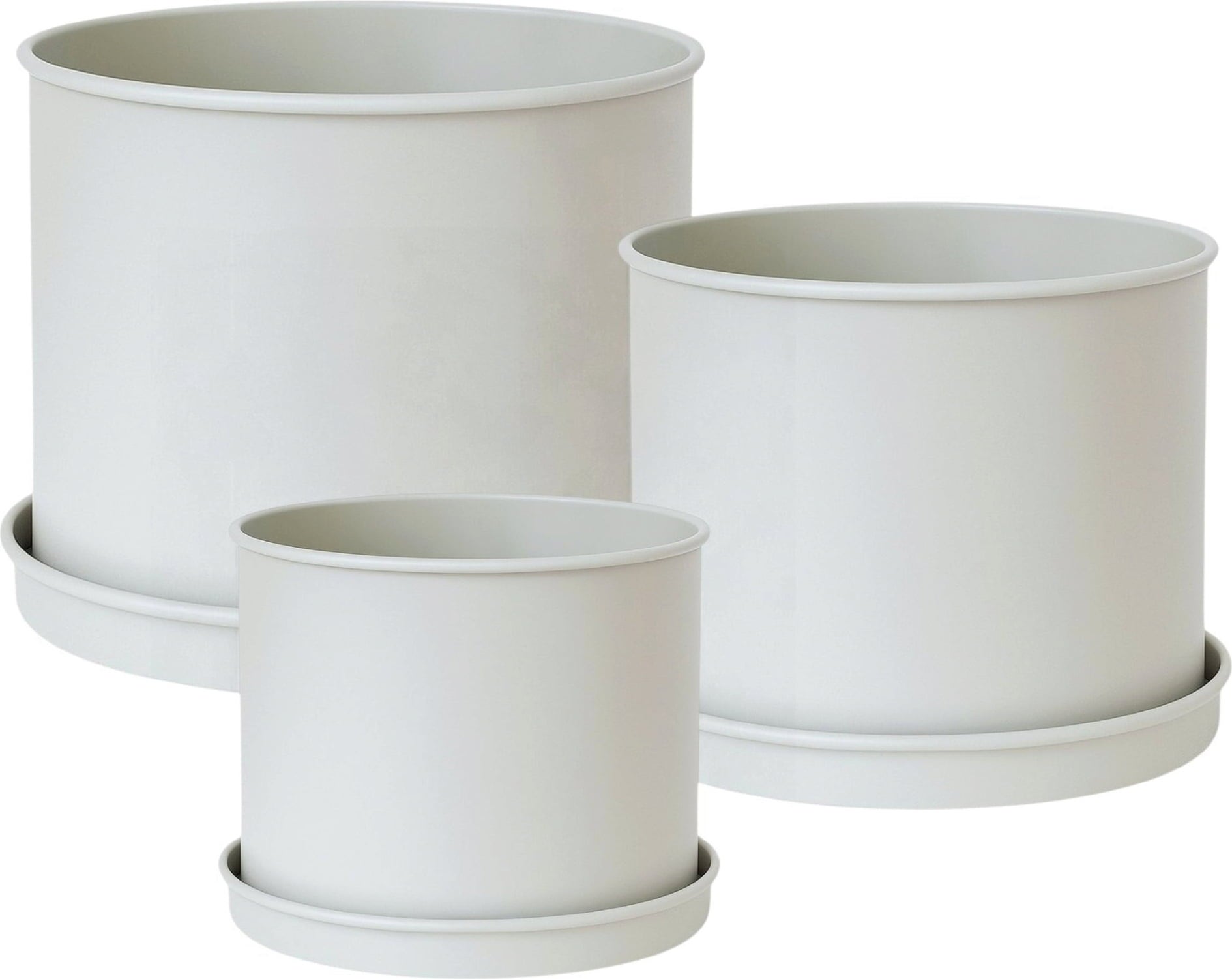 Livlig53 Maceta de Metal con Plato - Set de 3 unidades, Greige