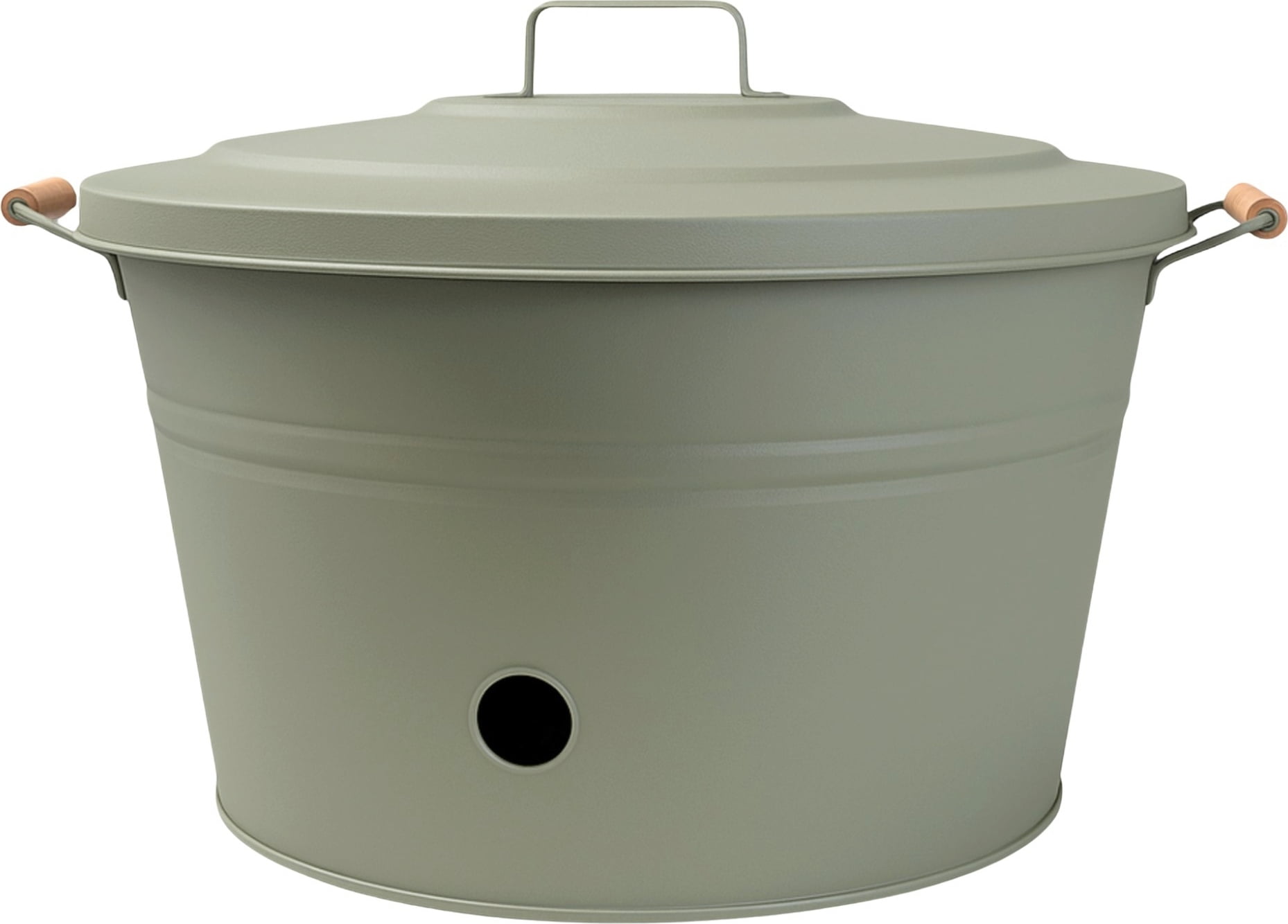- Contenedor y tapa de metal galvanizado en caliente y pintado con polvo.