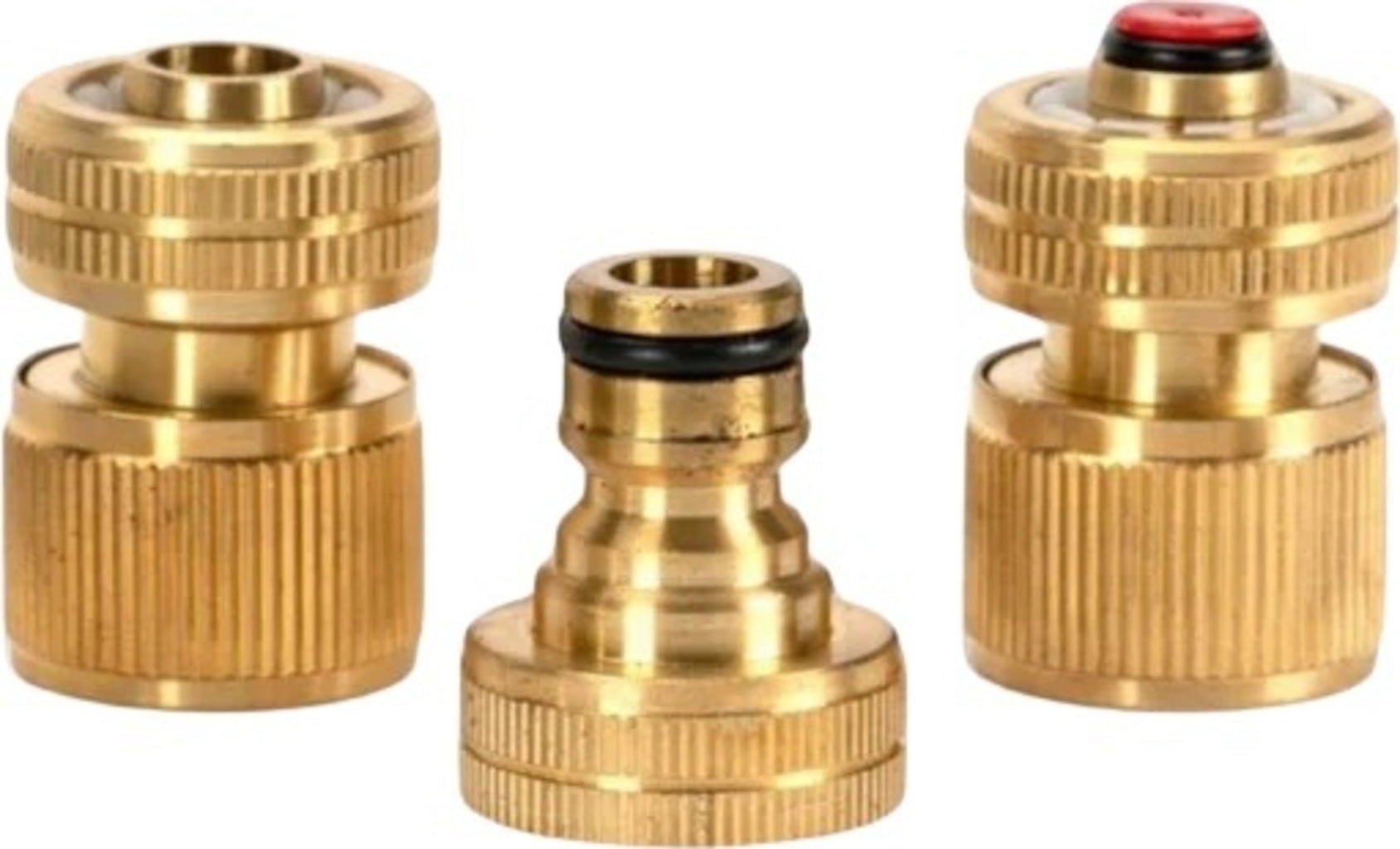 El set de racores para manguera, fabricado en latón macizo inoxidable, está bien elaborado y convence no sólo estéticamente, sino también por sus materiales y mano de obra de alta calidad.
