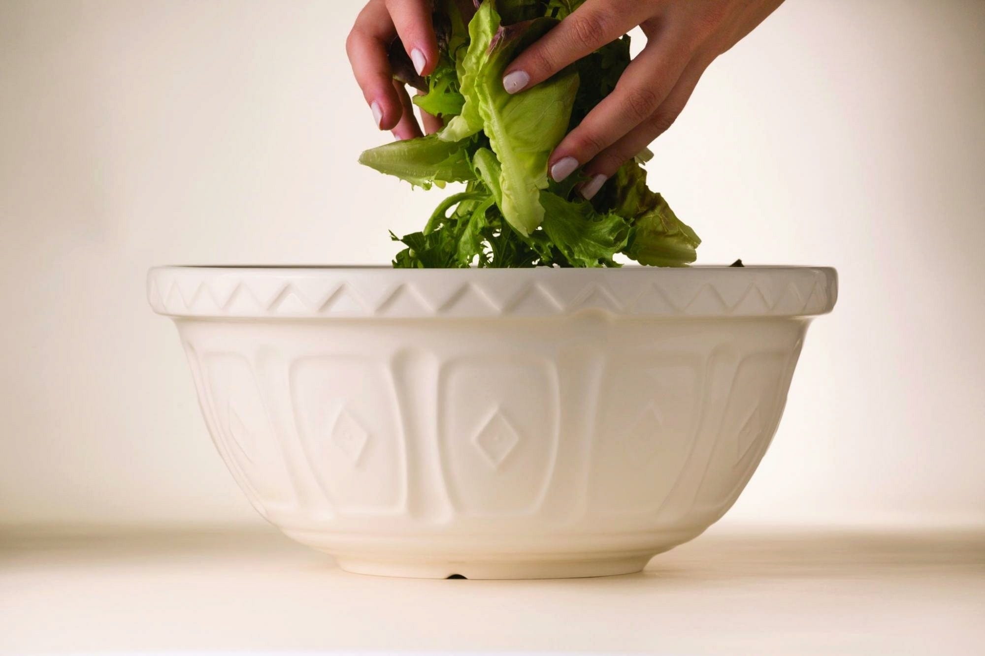 Este bol mezclador de Mason Cash es perfecto para elaborar panes, pasteles, tartas y masa de pizza. Está disponible en tres atractivos colores y está hecho de gres de alta calidad resistente a los golpes. Por lo tanto, es lo suficientemente pesado como para sostenerse firmemente en su lugar al preparar la masa y al mismo tiempo lo suficientemente ligero como para agarrarlo cómodamente con la mano.