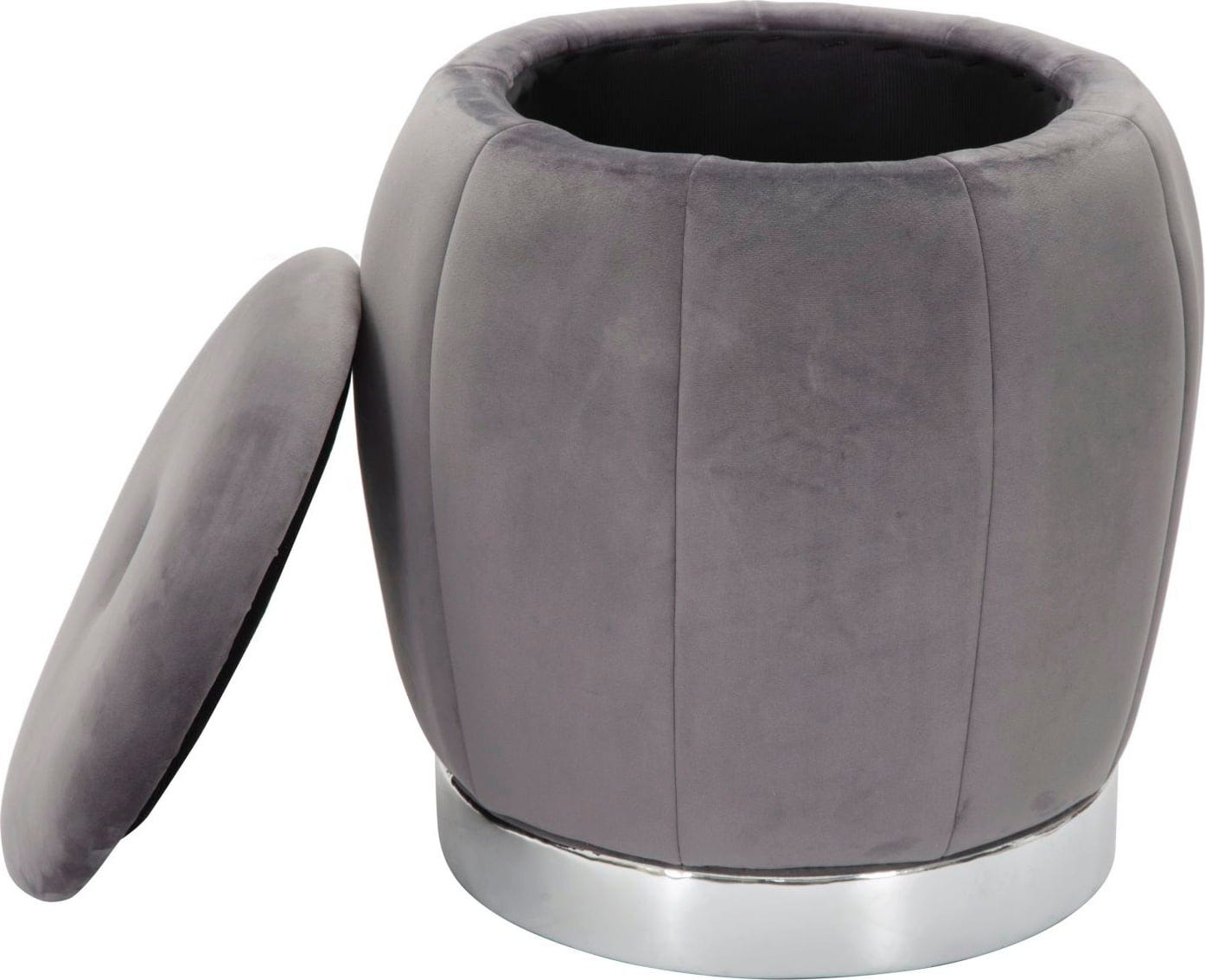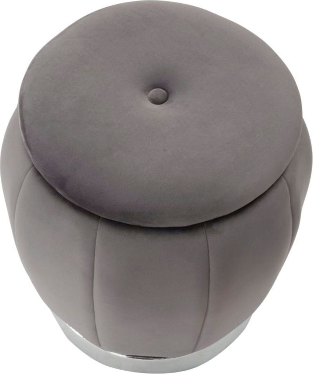Añade un toque glamuroso a tu salón o dormitorio con este elegante puf, inspirado en el encanto de los lujosos vestidores de las grandes divas de Hollywood. Está acolchado y tapizado en suave terciopelo gris, que proporciona una agradable sensación de lujo al tacto.