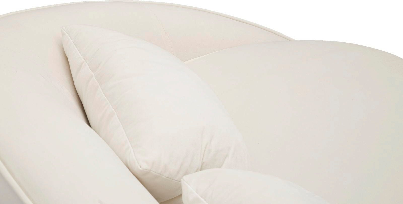¡Aporta un toque de elegancia, frescura y lujoso confort a tu salón con este elegante sofá de tres plazas! La lujosa y suave tapicería en un tono crema claro y las líneas suaves y acogedoras de su forma curvada y asimétrica lo convierten en un impresionante punto de atracción.