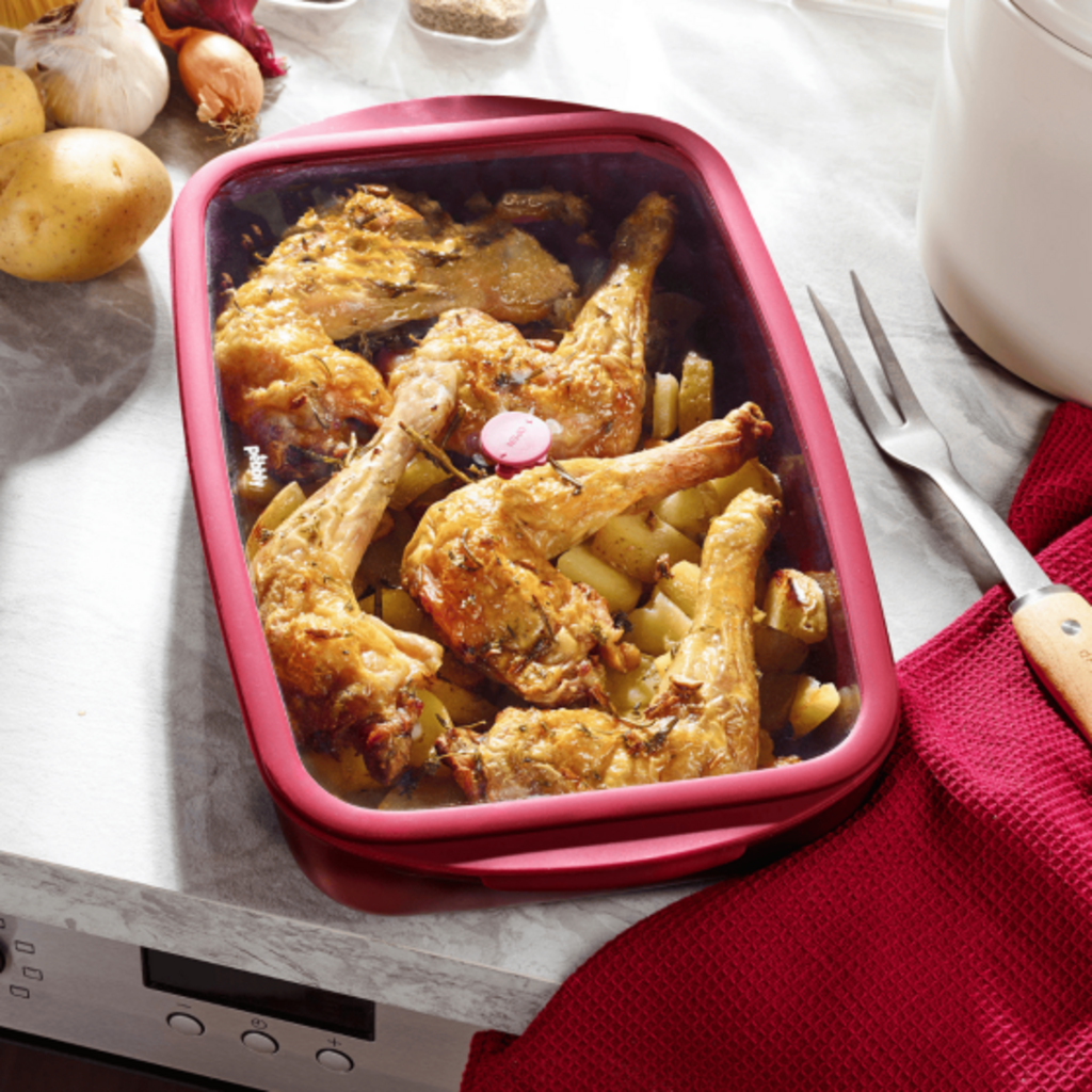 Esta gran bandeja de horno rectangular de cristal ofrece una generosa capacidad de 3,6 litros, perfecta para comidas familiares, fiestas o para preparar grandes cantidades de comida. Combina robustez y diseño elegante y puede llevarse directamente del horno a la mesa. La tapa de cristal protege los alimentos, mantiene frescos los sabores y simplifica el almacenamiento en el frigorífico. Ideal para quienes disfrutan compartiendo comidas y aprecian tanto el estilo como la funcionalidad.