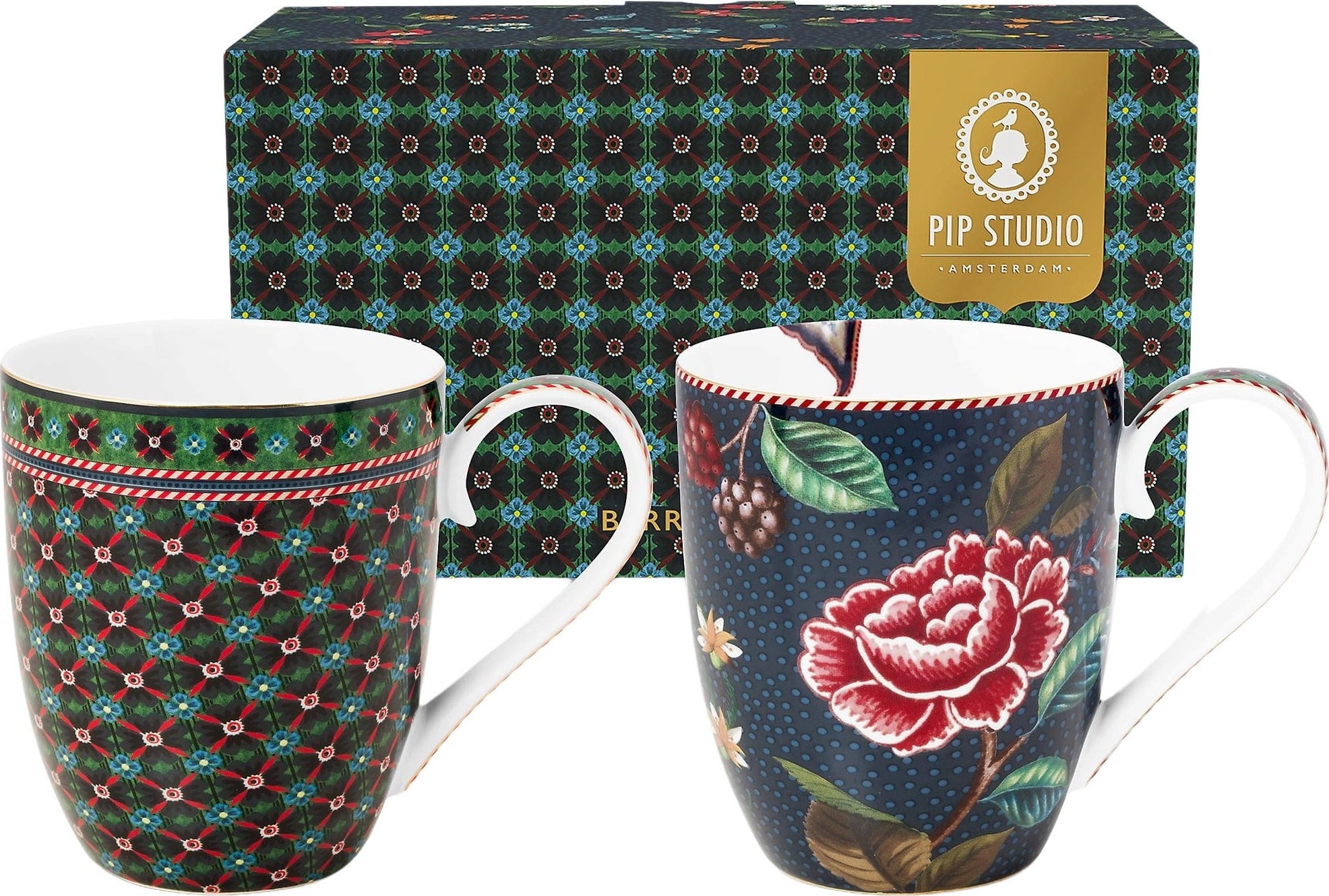 Disfruta de tu bebida favorita con estilo con este precioso juego de dos tazas de la colección Berry Blues de Pip Studio. Las tazas se distinguen por sus tonos oscuros y sofisticados y sus preciosos motivos florales, que van desde los más delicados a los más ricos y dramáticos. Descubra extravagantes nenúfares, hermosos claveles y exquisitas flores que conforman un diseño armonioso y encantador.
