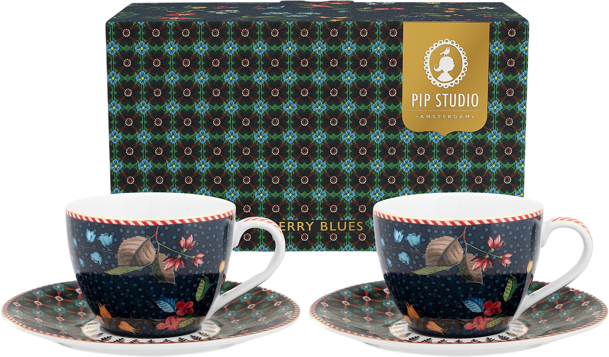 Pip Studio Berry Blues - Tazas con Plato - Set de 2 Unidades