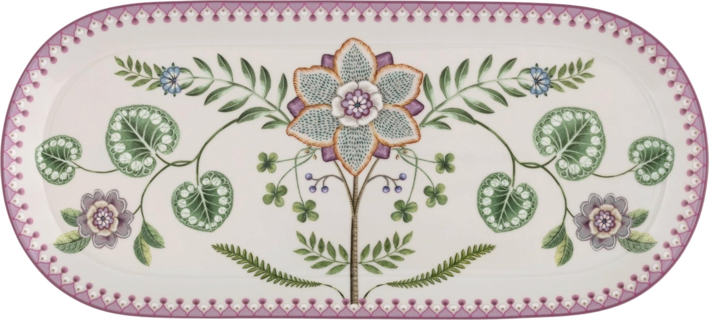 Sirve tartas, pasteles o canapés con estilo en este precioso plato alargado de la colección Lily & Lotus de Pip Studio. Está decorado con un gran nenúfar de fantasía y otras flores parecidas al loto en delicados tonos pastel. Las flores y los elegantes remolinos están dispuestos simétricamente, lo que confiere a este refinado plato de postre un encanto moderno y atemporal.