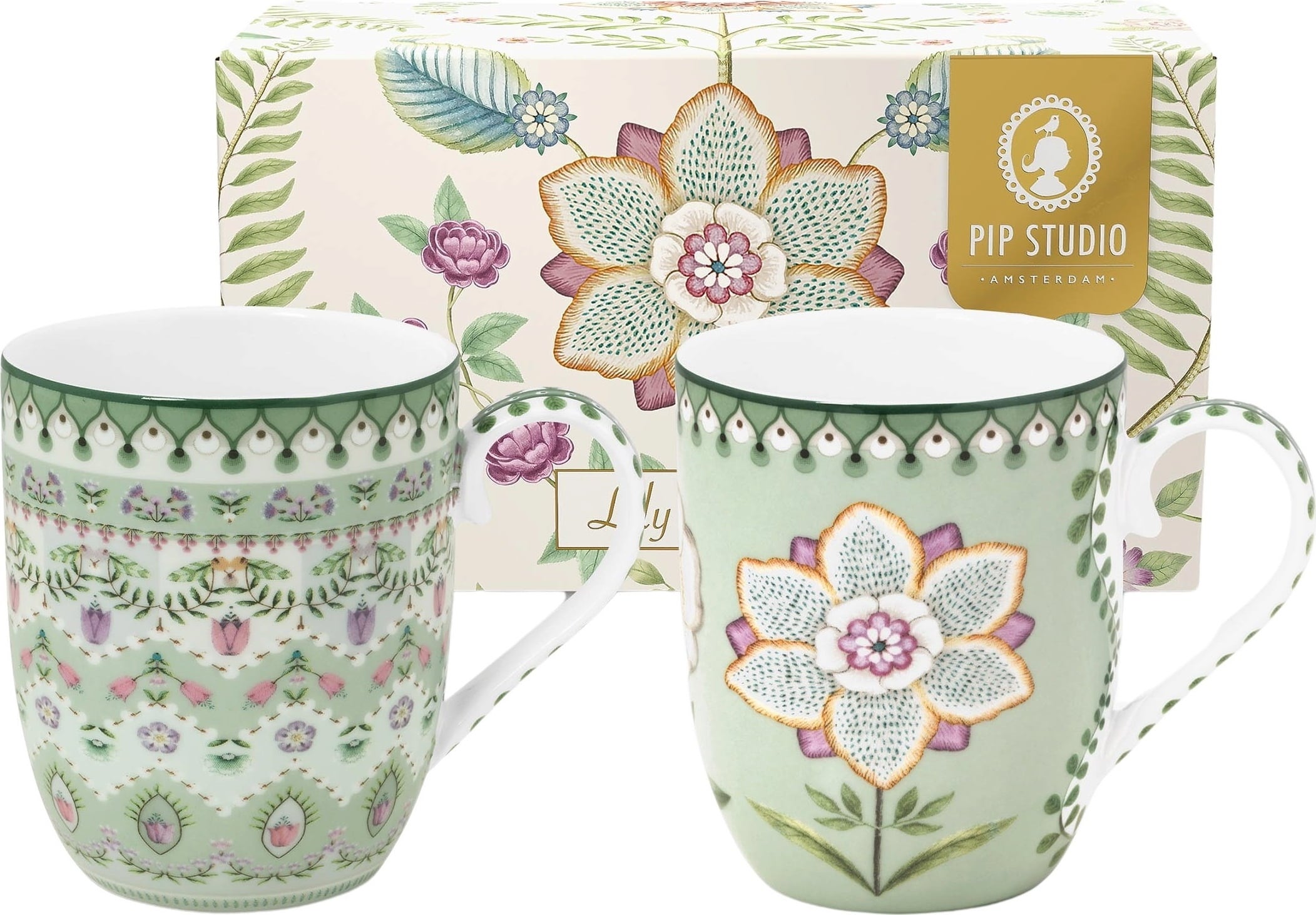 Pip Studio Lily & Lotus - Taza Pequeña - Set de 2 Unidades, Verde claro (145 ml)