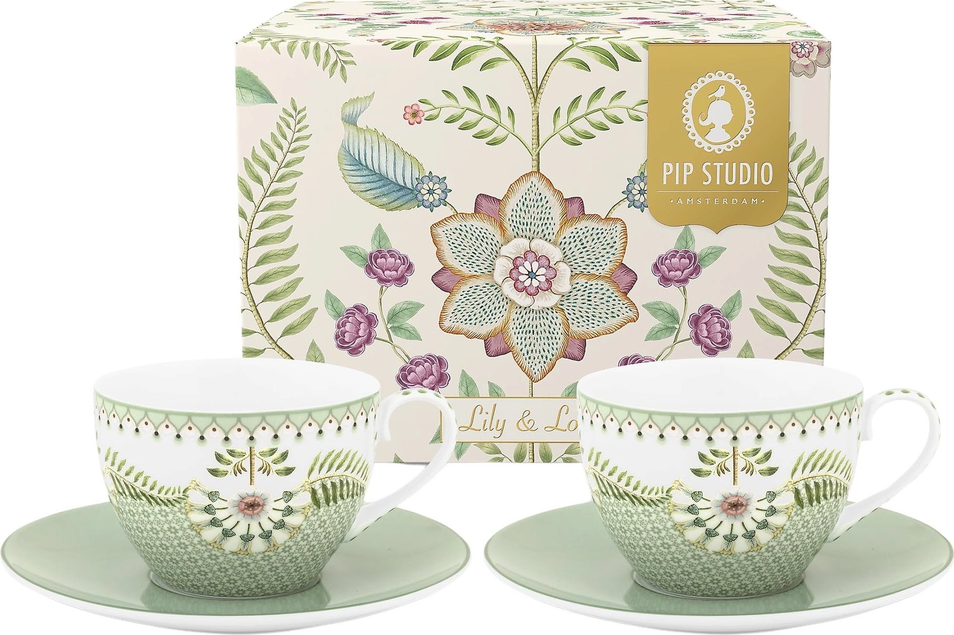 Pip Studio Lily & Lotus - Tazas con Plato - Set de 2 Unidades, Verde claro (280 ml)