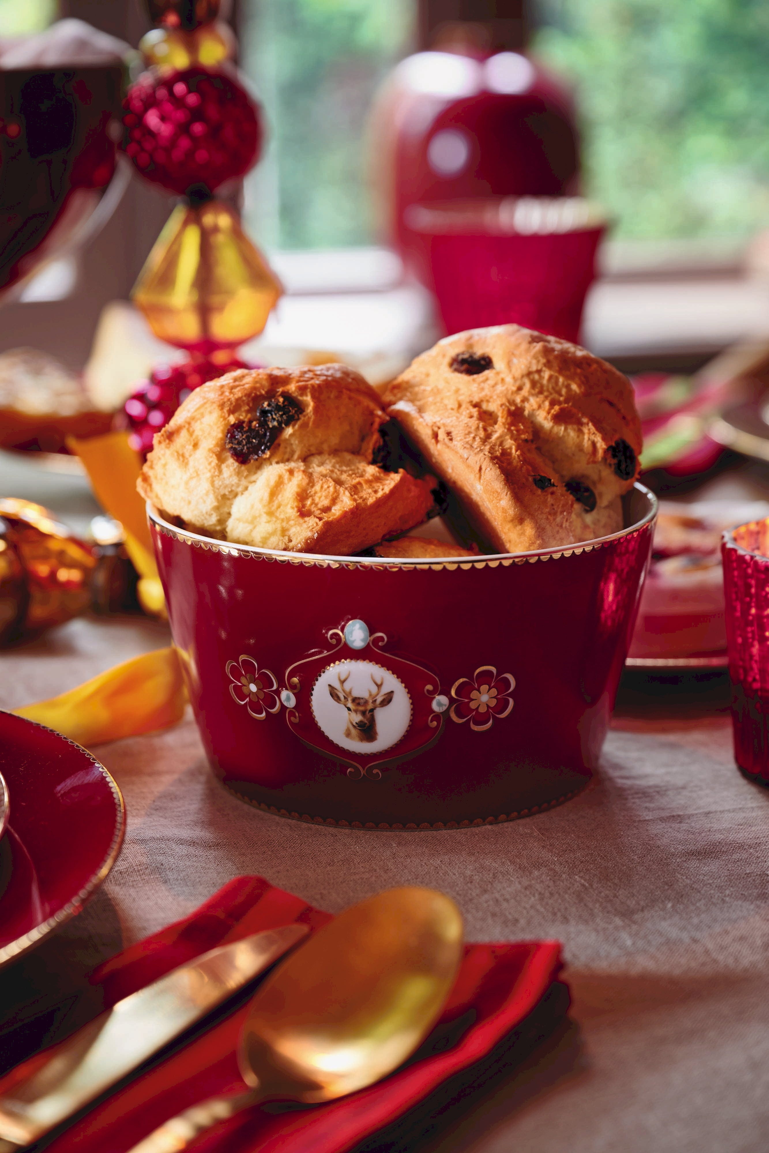 Fabricado en porcelana fina, cautiva con su encantador diseño: tonos armoniosos, delicados motivos ornamentales, refinados toques dorados y, en el centro, una decoración que destaca un adorable ciervo.