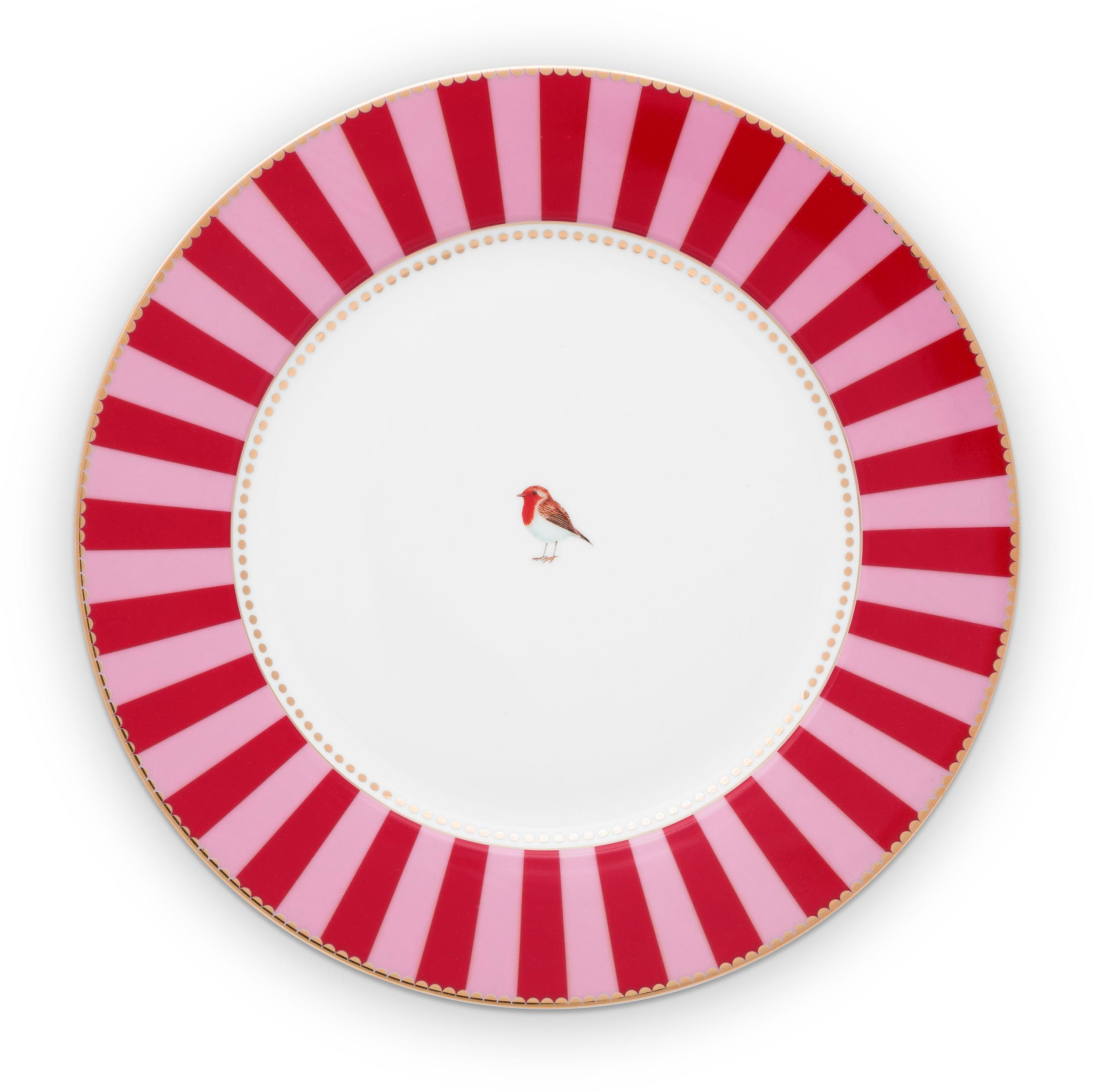 Pip Studio Love Birds - Plato a Rayas Red/Pink, 26,5 cm