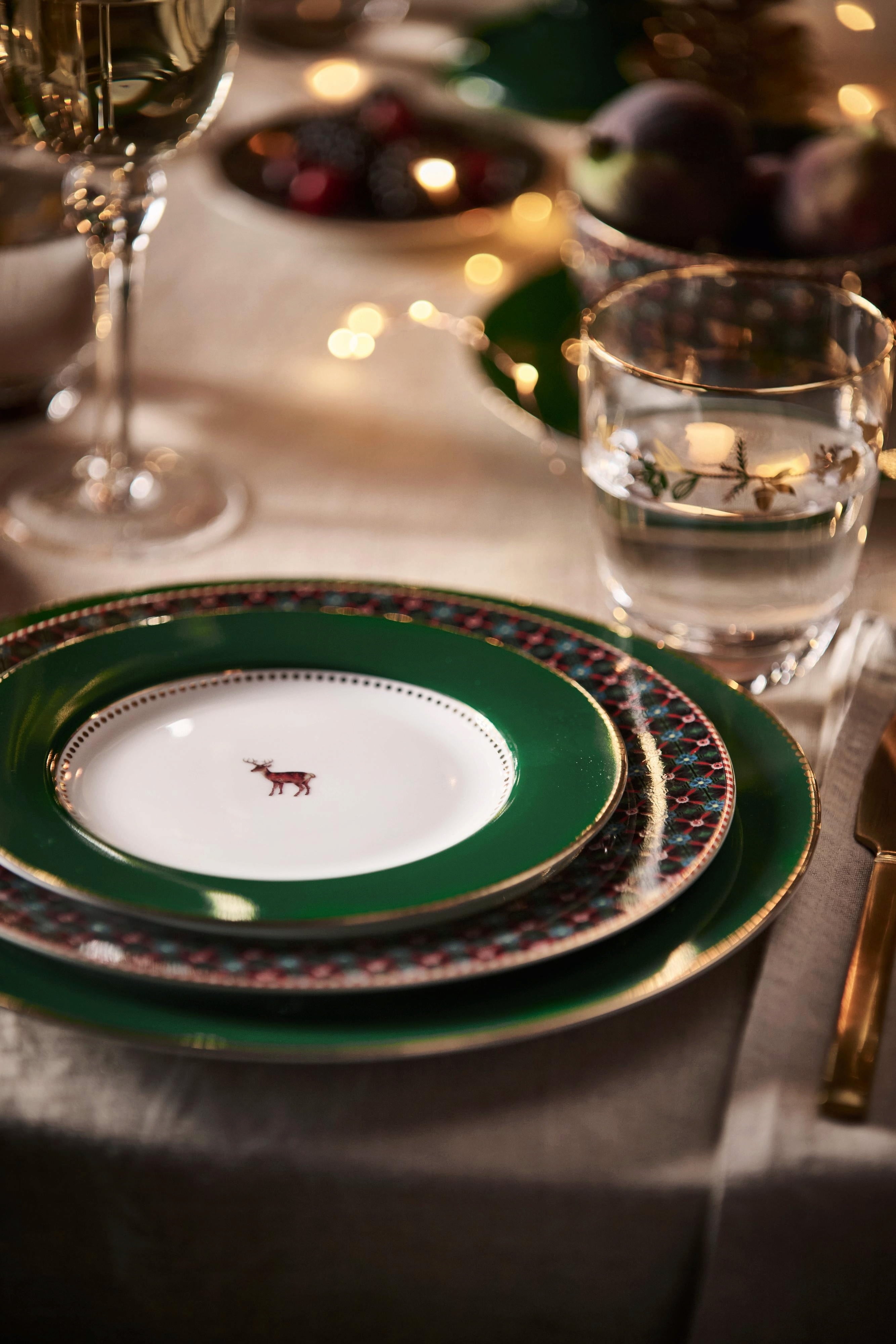 Aportará una elegancia única a la mesa con este encantador plato de Pip Studio. Un borde verde oscuro y finos detalles dorados enmarcan el dulce ciervo del centro, creando un diseño a la vez elegante y gracioso. Elaborado en fina porcelana, este gracioso plato se convierte en una auténtica estrella en la mesa, un detalle especial sobre todo durante la época navideña.