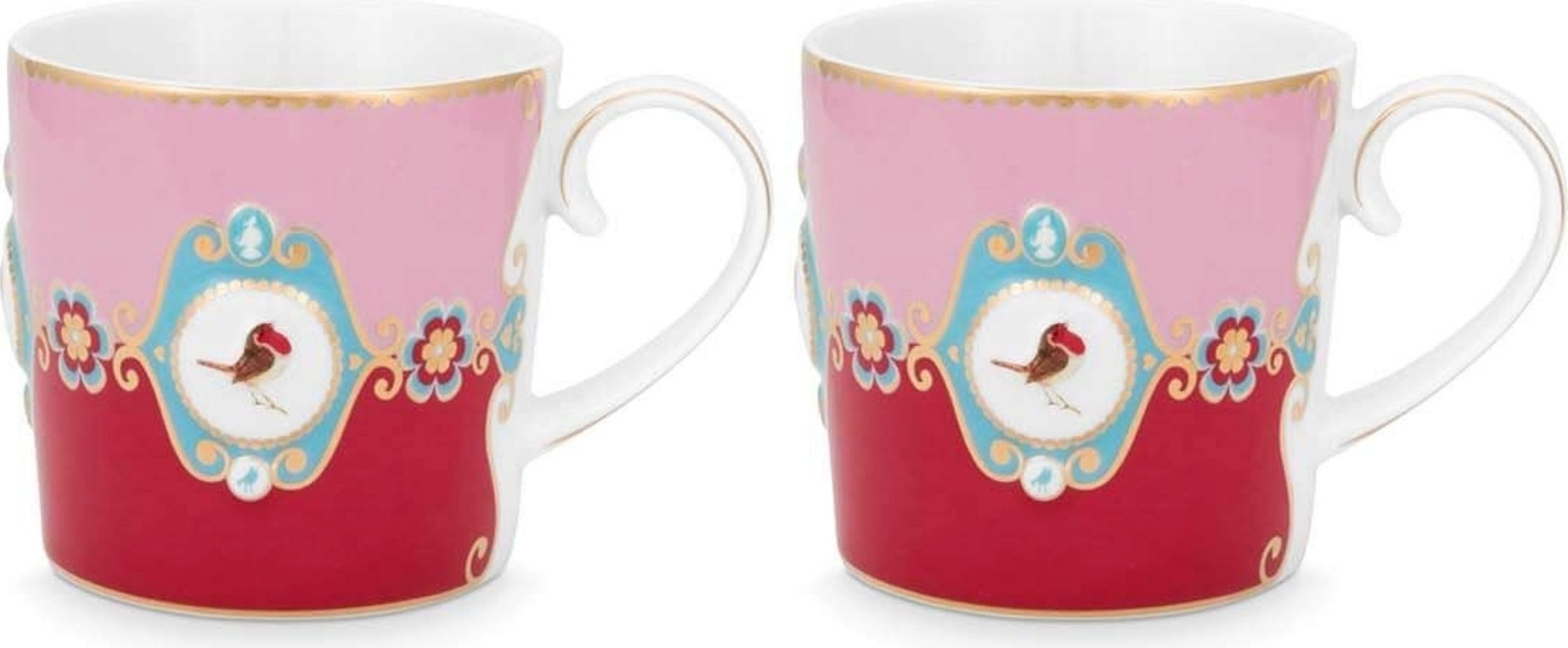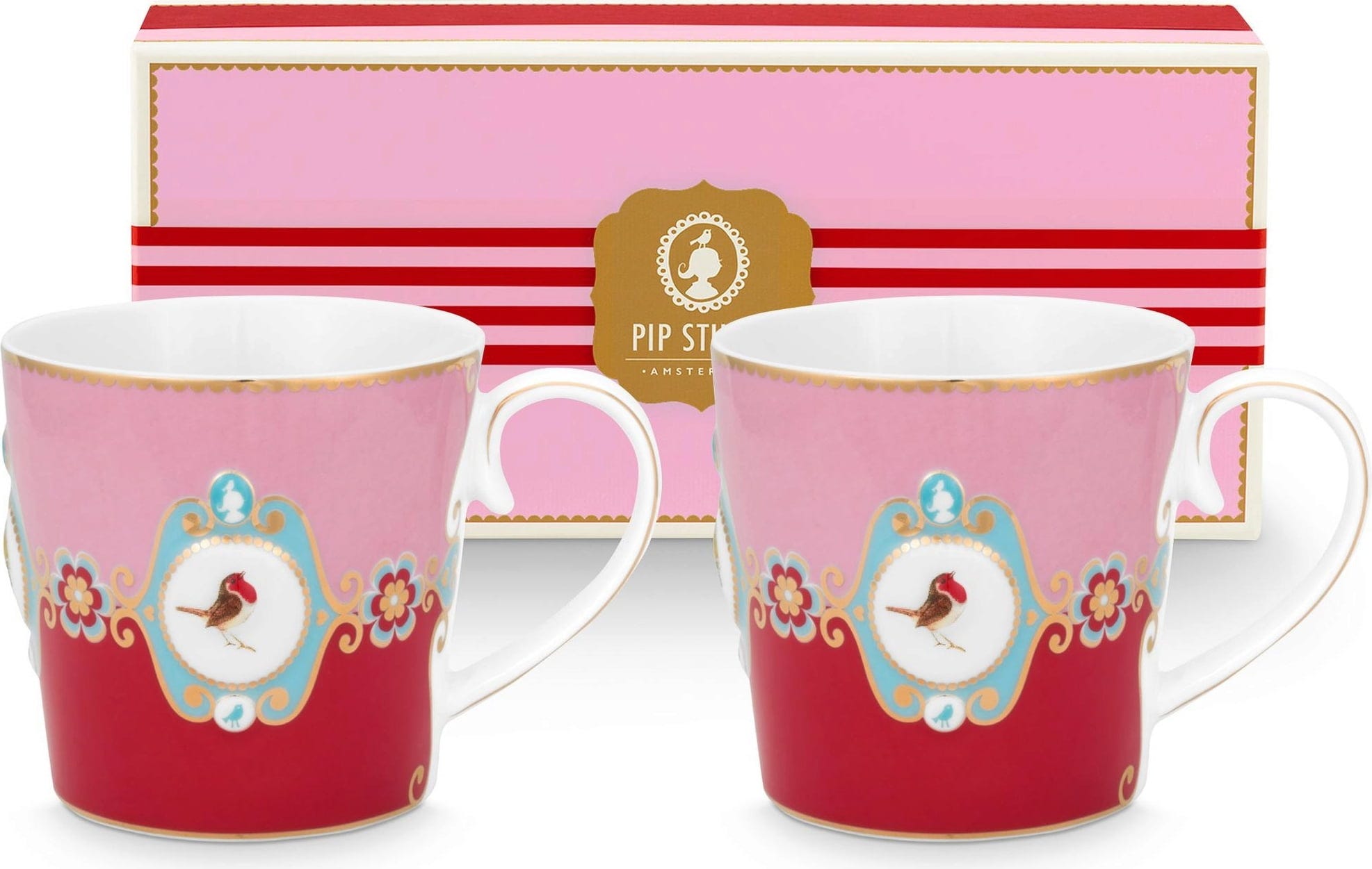 Pip Studio Love Birds - Set de Tazas, Rojo/Rosa