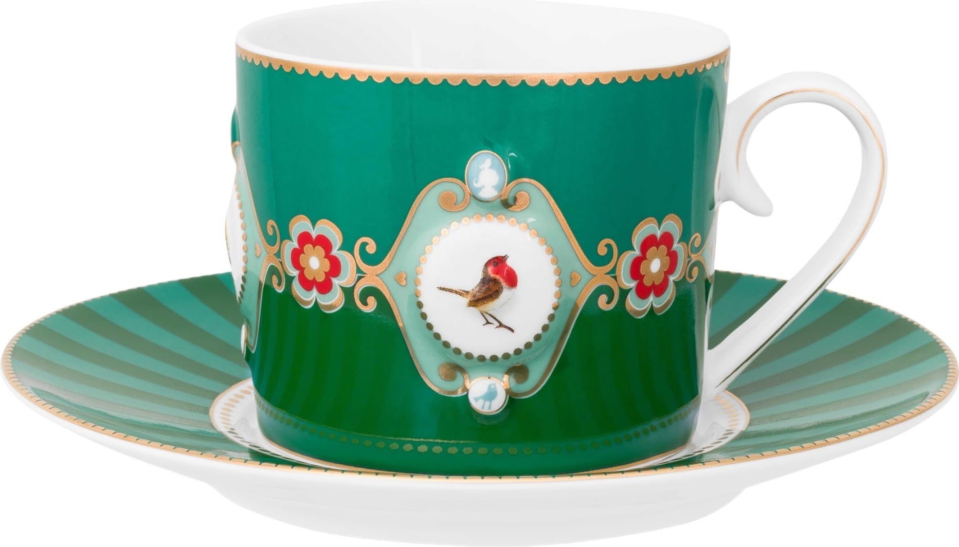 Pip Studio Love Birds - Taza Cappuccino con Plato, Verde (200 ml)