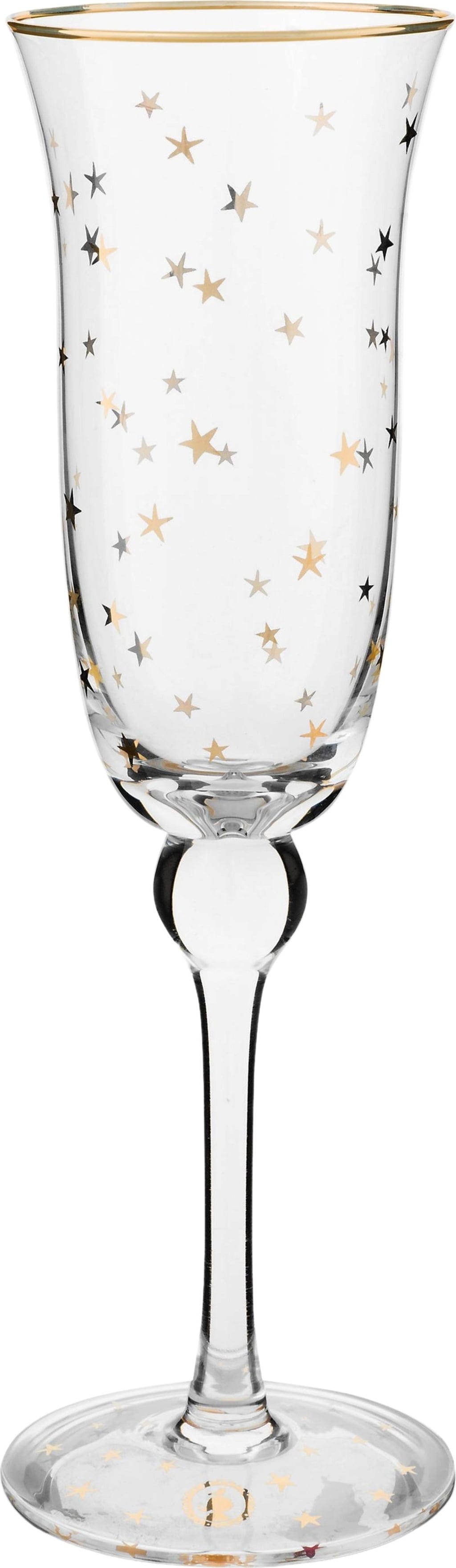 Haz que tus bebidas brillen con estilo con esta preciosa copa de champán de Pip Studio. Fabricada en cristal transparente de alta calidad, está adornada con delicados motivos de estrellas doradas y plateadas. Un sutil borde dorado añade un toque de lujo, mientras que el elegante tallo con una refinada decoración de perlas la convierte en un auténtico centro de atención en la mesa. Además, ofrece una generosa capacidad de 250 ml.