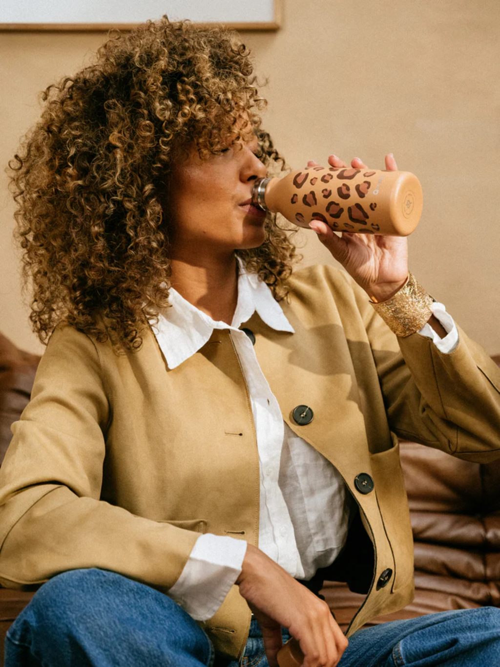 Atrevida y elegante, la botella térmica Wild se inspira en la fuerza y la elegancia de los leopardos, reinterpretadas con un toque moderno. Fabricada con acero inoxidable reciclado al 90 %, no contiene BPA, es hermética y está diseñada con materiales seguros y sostenibles. Mantiene las bebidas frías hasta 24 horas y calientes hasta 12 horas, ofreciendo un alto rendimiento en un formato refinado y práctico. Una opción ideal para quienes desean combinar elegancia, funcionalidad y respeto por el medio ambiente.