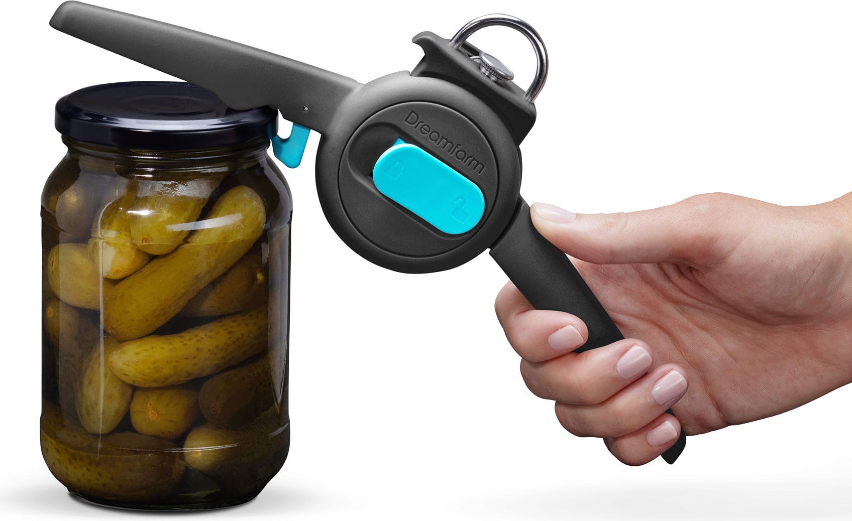 También funciona como un práctico abridor de lengüetas para conservas y está equipado con una palanca inteligente para liberar el vacío, con la que puedes abrir tarros de mermelada atascados en pocos segundos y sin esfuerzo.