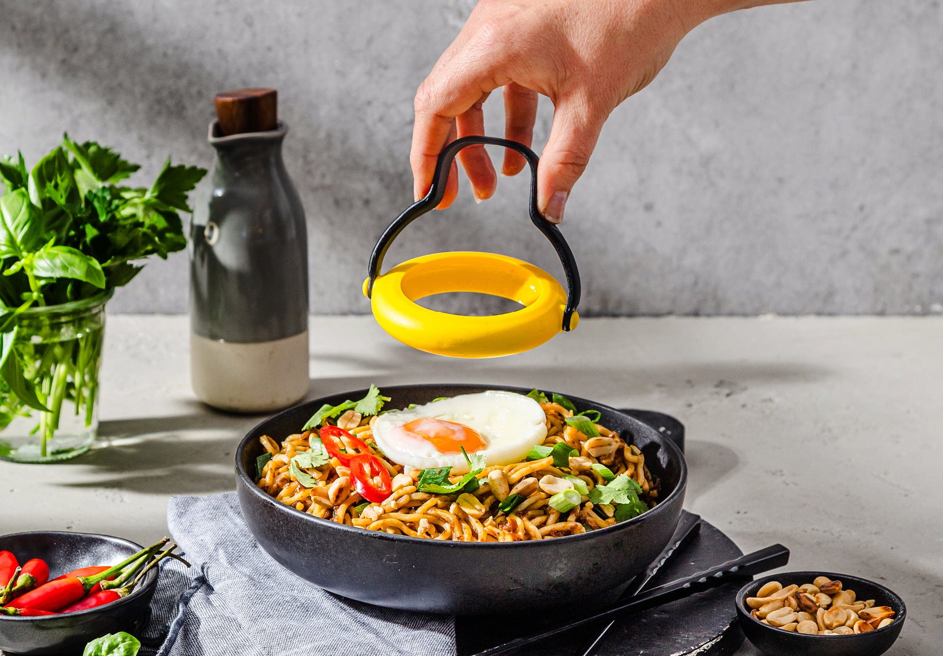 Con el anillo para huevos Flegg de Dreamfarm, ¡por fin te olvidarás del problema de las yemas rotas! Este innovador utensilio ha sido diseñado específicamente para mantener el huevo frito en forma directamente en la sartén y luego levantarlo con precisión, sin que se deslice, hasta el plato.