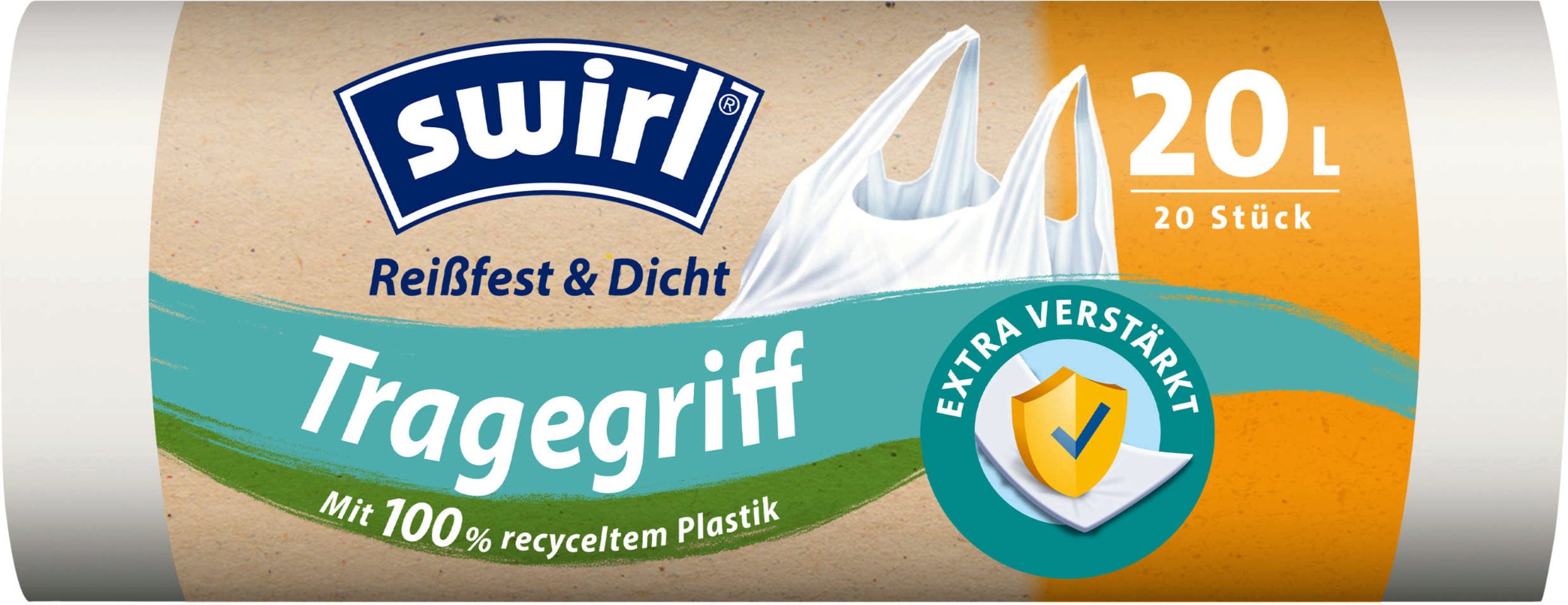 Swirl® Bolsas de basura resistentes al desgarro y a prueba de fugas con asa de transporte, 20 unidades