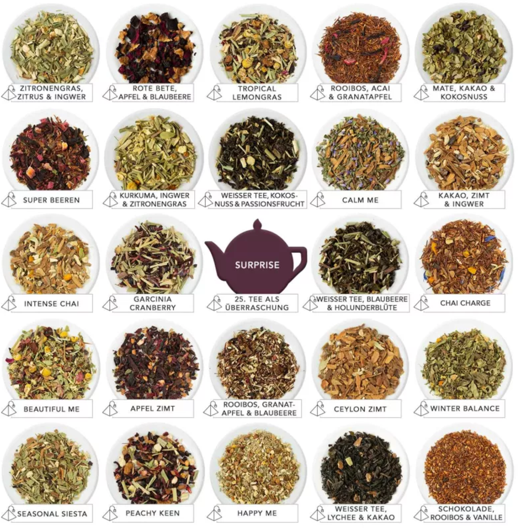 Alerta de spoiler: para quienes no quieran esperar hasta Navidad, al final del calendario de Adviento hay una imagen general de las variedades incluidas. La misma imagen se puede encontrar en la galería de fotos del producto.