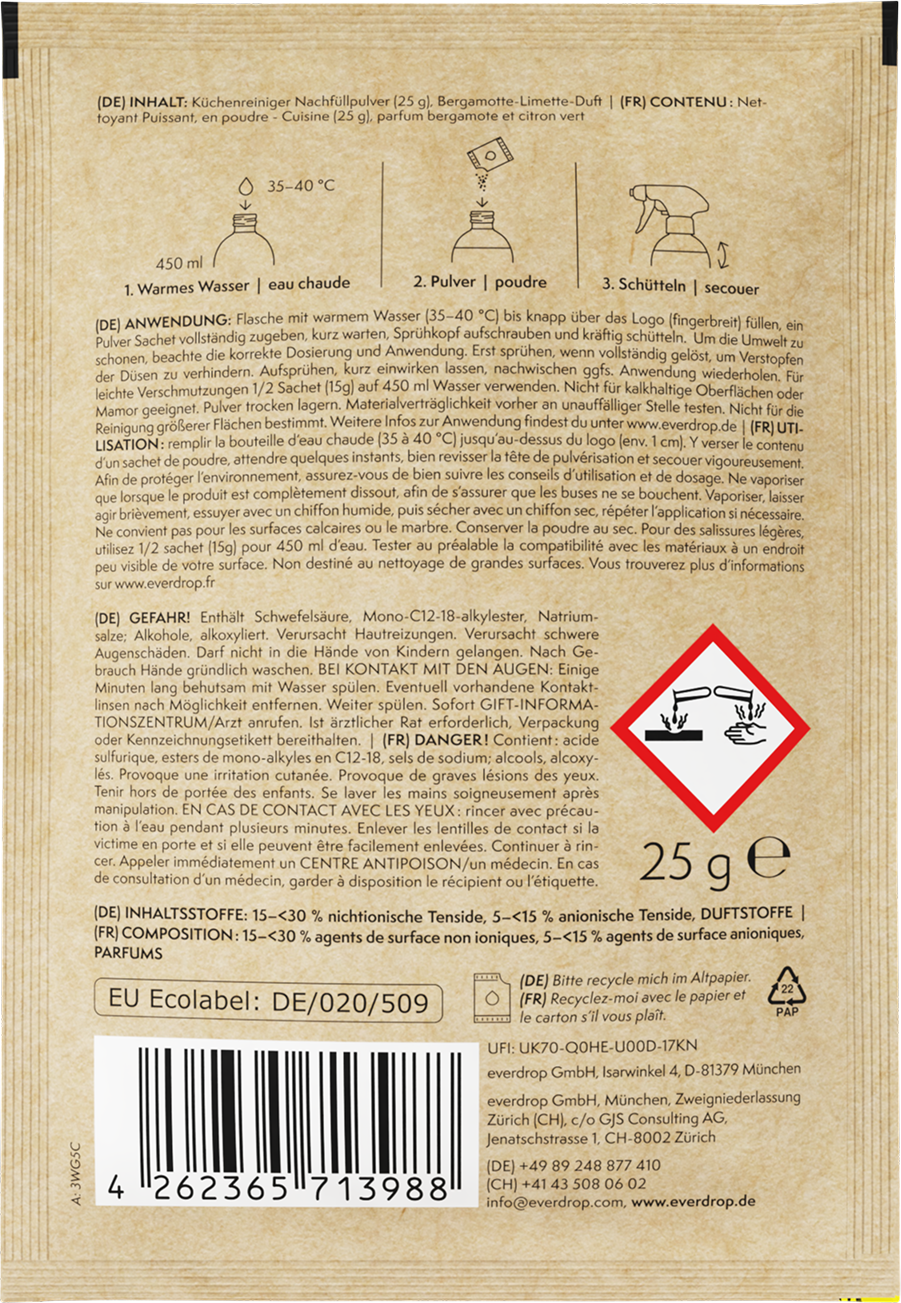everdrop Limpiador de Cocina en Polvo - Sobres, 25 g