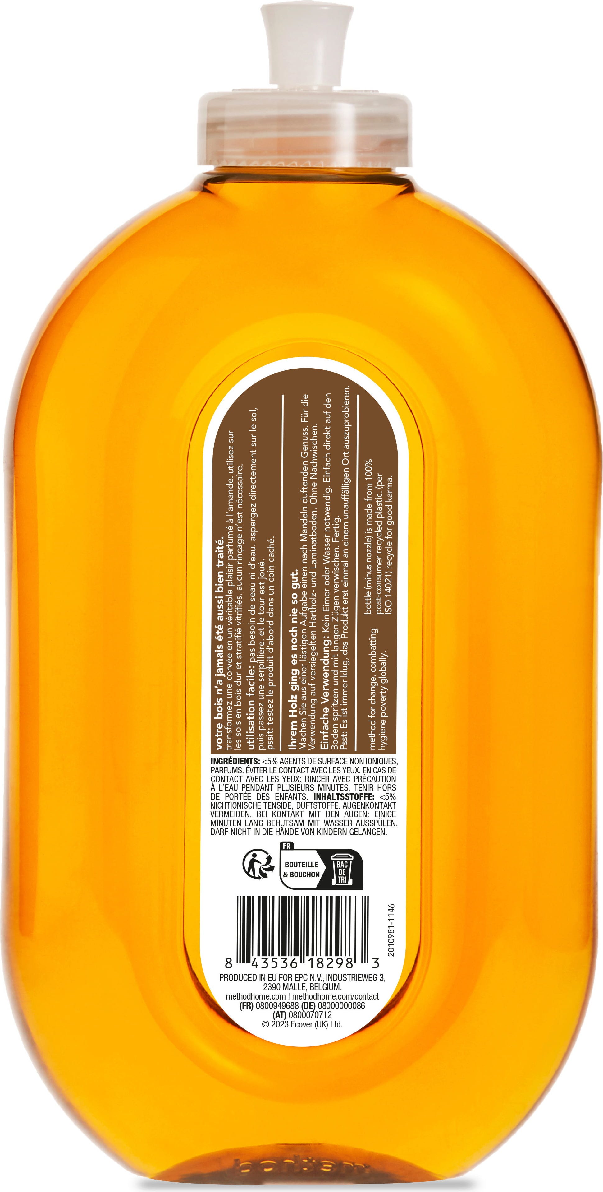 Con este limpiador de suelos no necesita ni agua ni cubo. La mezcla lista para usar, sin cera, es fácil de usar y ha sido especialmente formulada para suelos de madera. Para una limpieza natural con un delicado aroma a almendras.