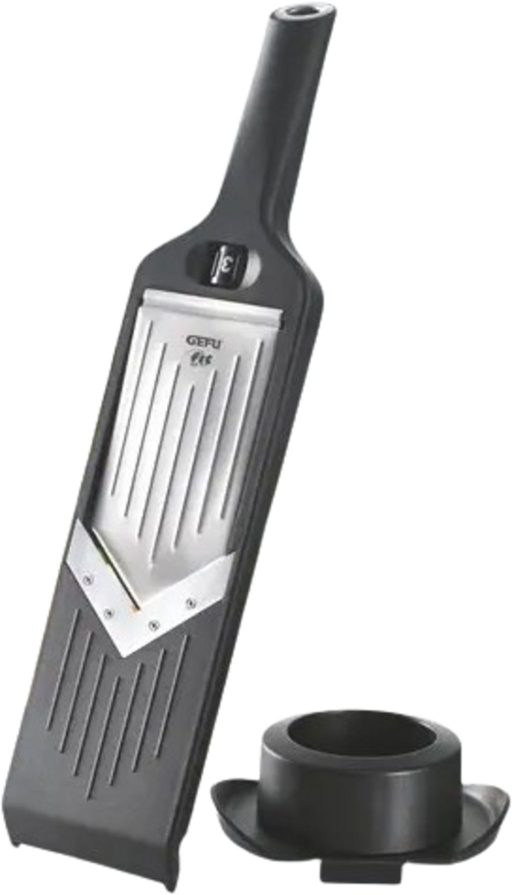 La mandolina en V VIOLI® de GEFU es la solución compacta e ideal para tus preparaciones diarias. Gracias a su cuchilla intercambiable ultra afilada de acero japonés, corta frutas y verduras de forma rápida, precisa y uniforme. Puedes ajustar el grosor de corte eligiendo entre cinco niveles de 1 a 5 mm.