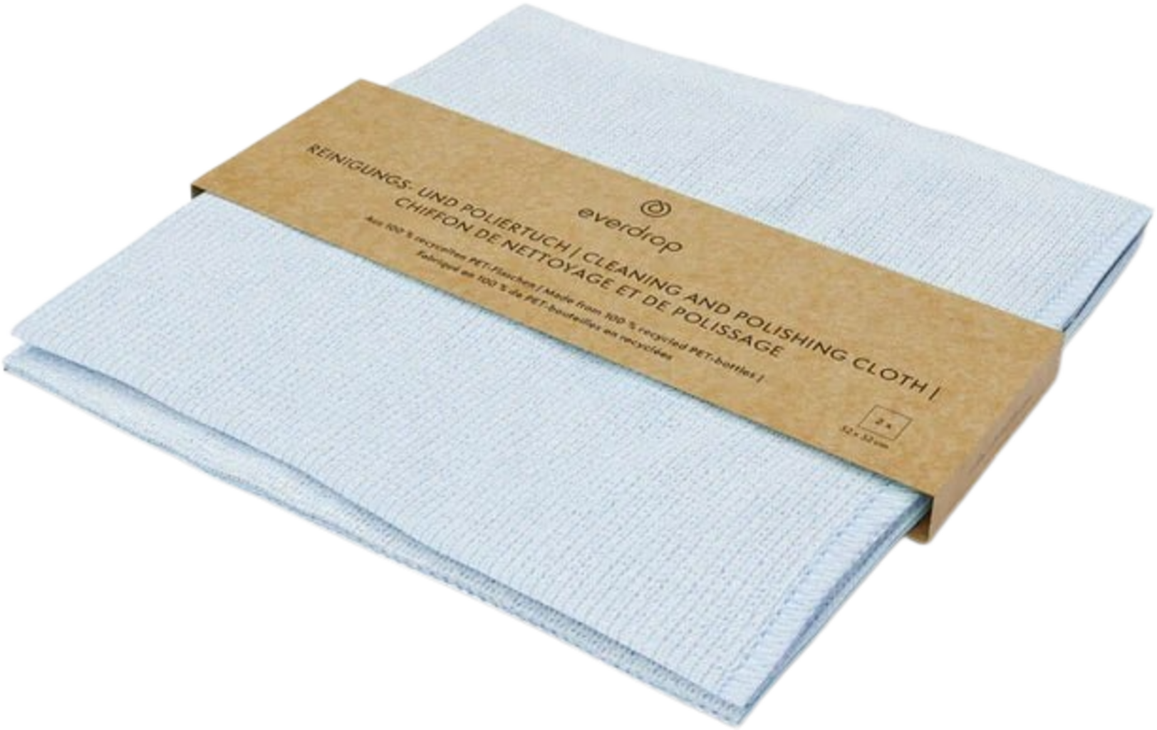 Estos paños de limpieza y abrillantado están fabricados al 100% con botellas de PET recicladas y sus microfibras limpian eficazmente las superficies de cristal y espejos, ya que eliminan el polvo y las huellas sin dejar pelusas ni halos.