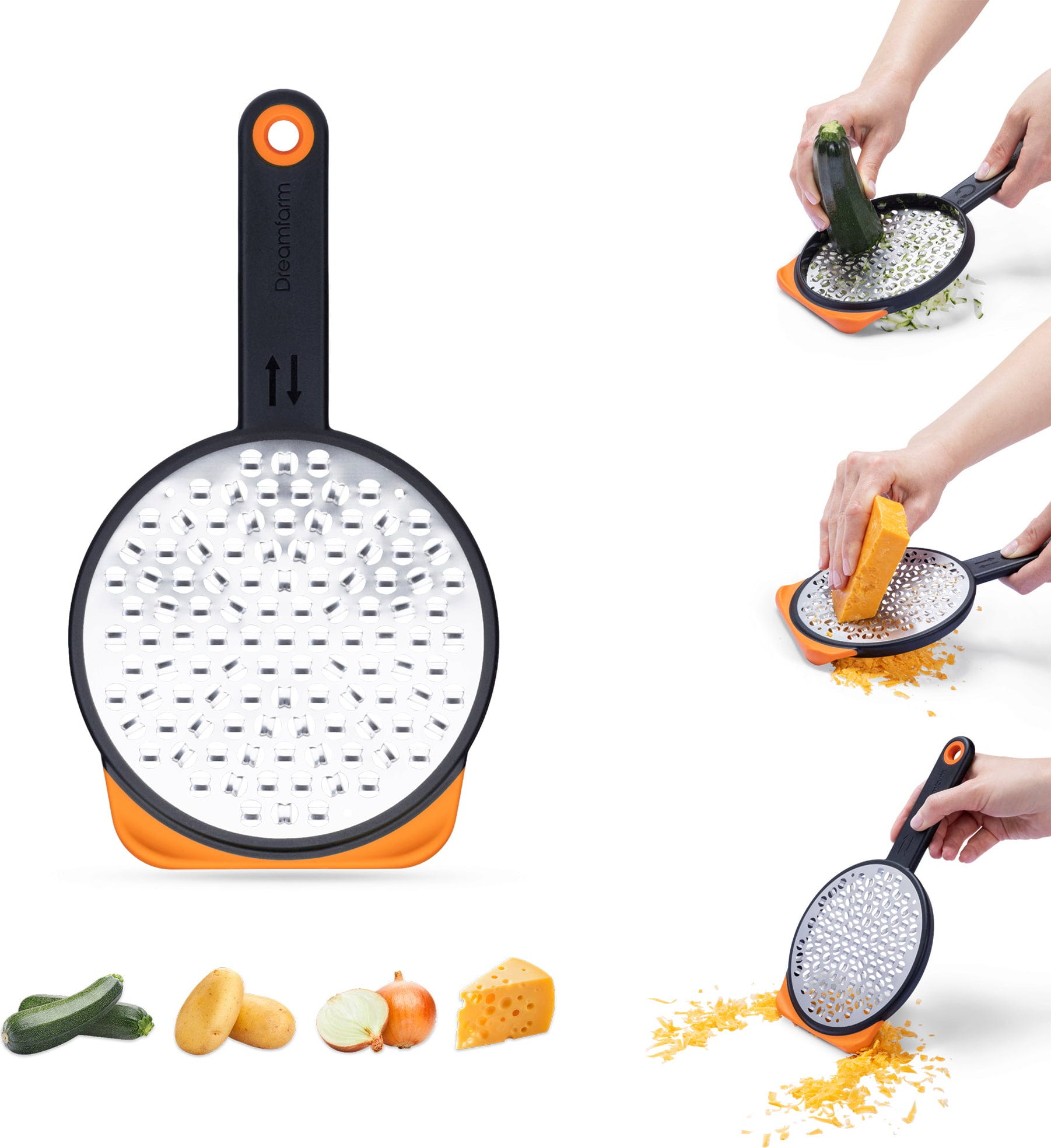 Con el rallador Ograte de Dreamfarm, podrás rallar grandes cantidades de verduras o queso en un tiempo récord. El secreto es su amplia superficie circular, que te permite trabajar de forma aún más eficiente gracias a las cuchillas situadas a ambos lados.