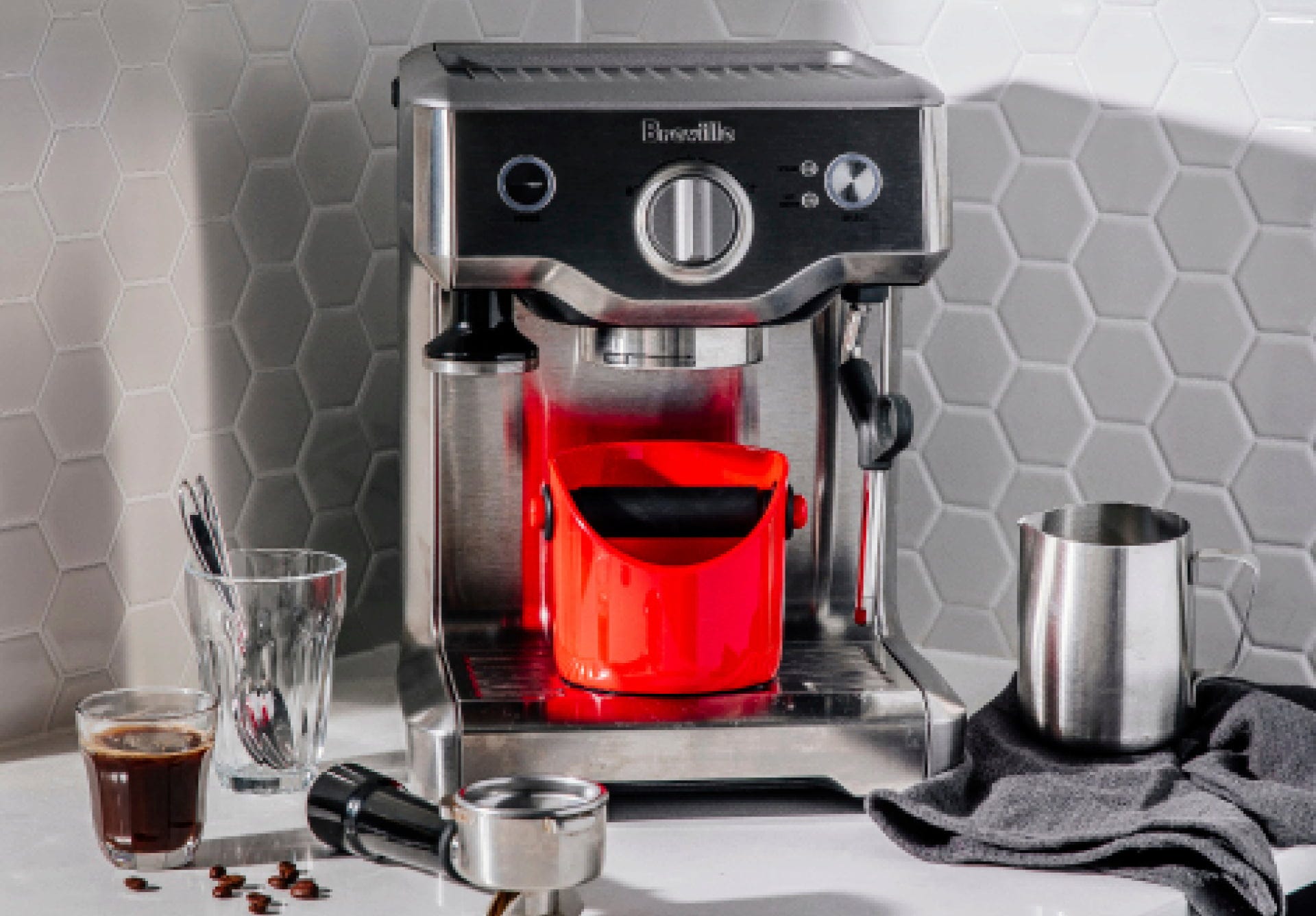 La barra de golpeo recubierta de silicona reduce el ruido y protege el equipo, mientras que la base antideslizante mantiene el recipiente siempre estable en su sitio. El recipiente interior extraíble se limpia en pocos segundos, dejándote más tiempo para disfrutar de tu espresso perfecto.