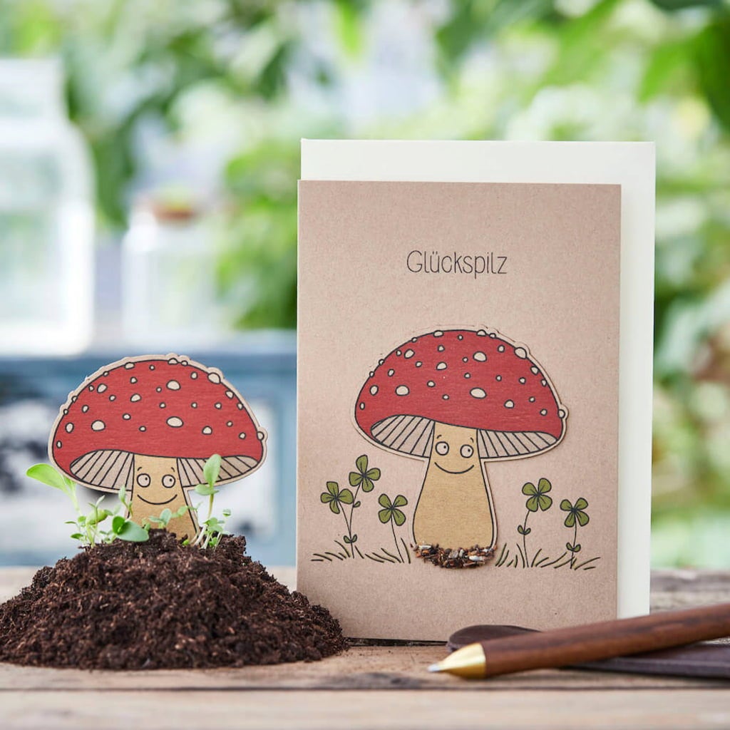 Die Stadtgärtner Tarjeta de Felicitación con Semillas "Seta de la Suerte"